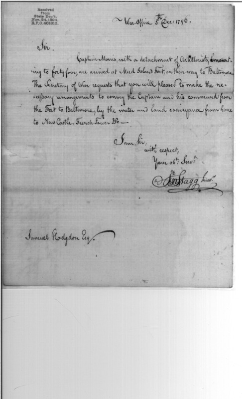 - In source: Collection: Post Revolutionary War Papers, 1784-1815. (RG94)
