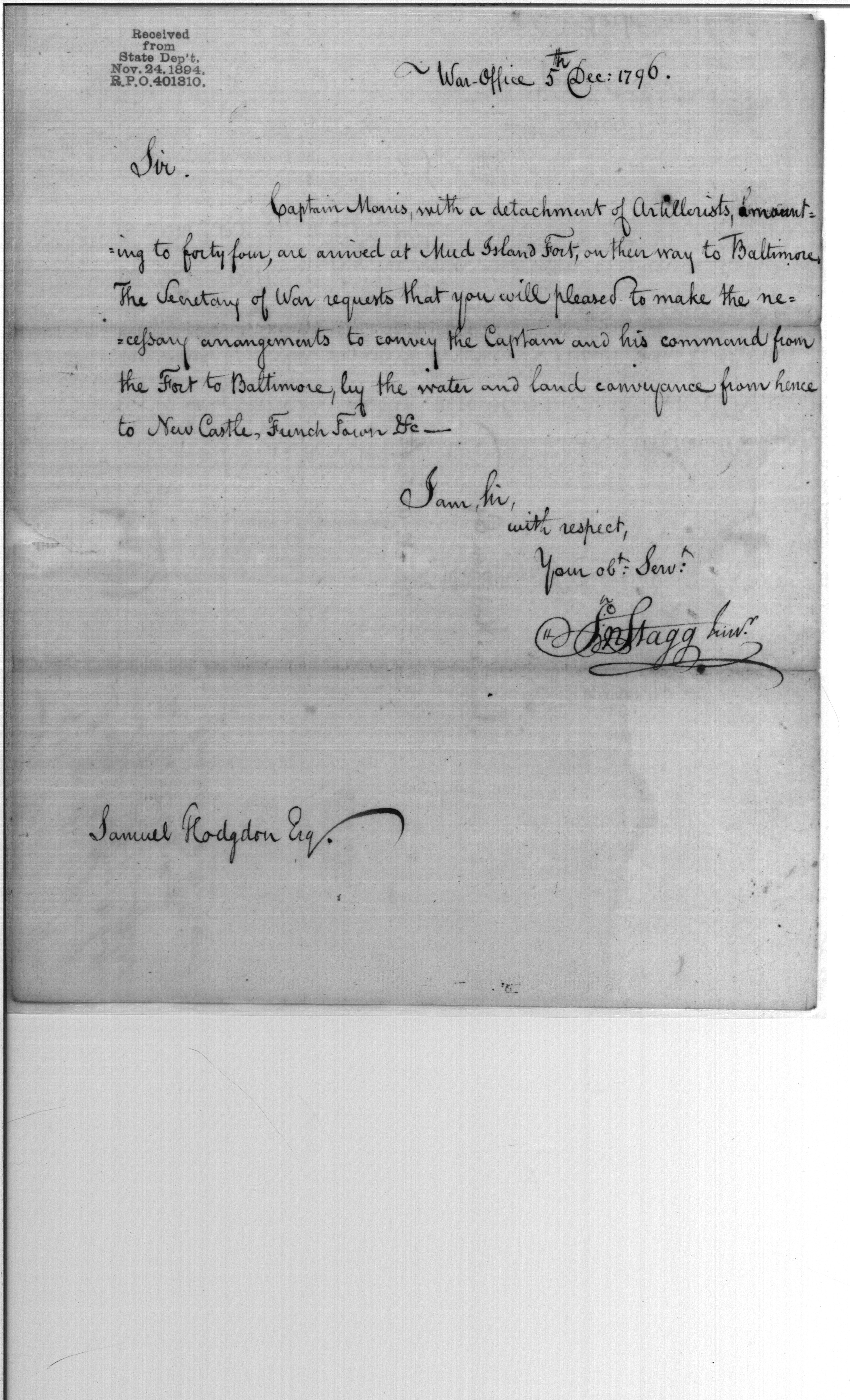 - Document: Conveying Captain Morris's Detachment to Baltimore
