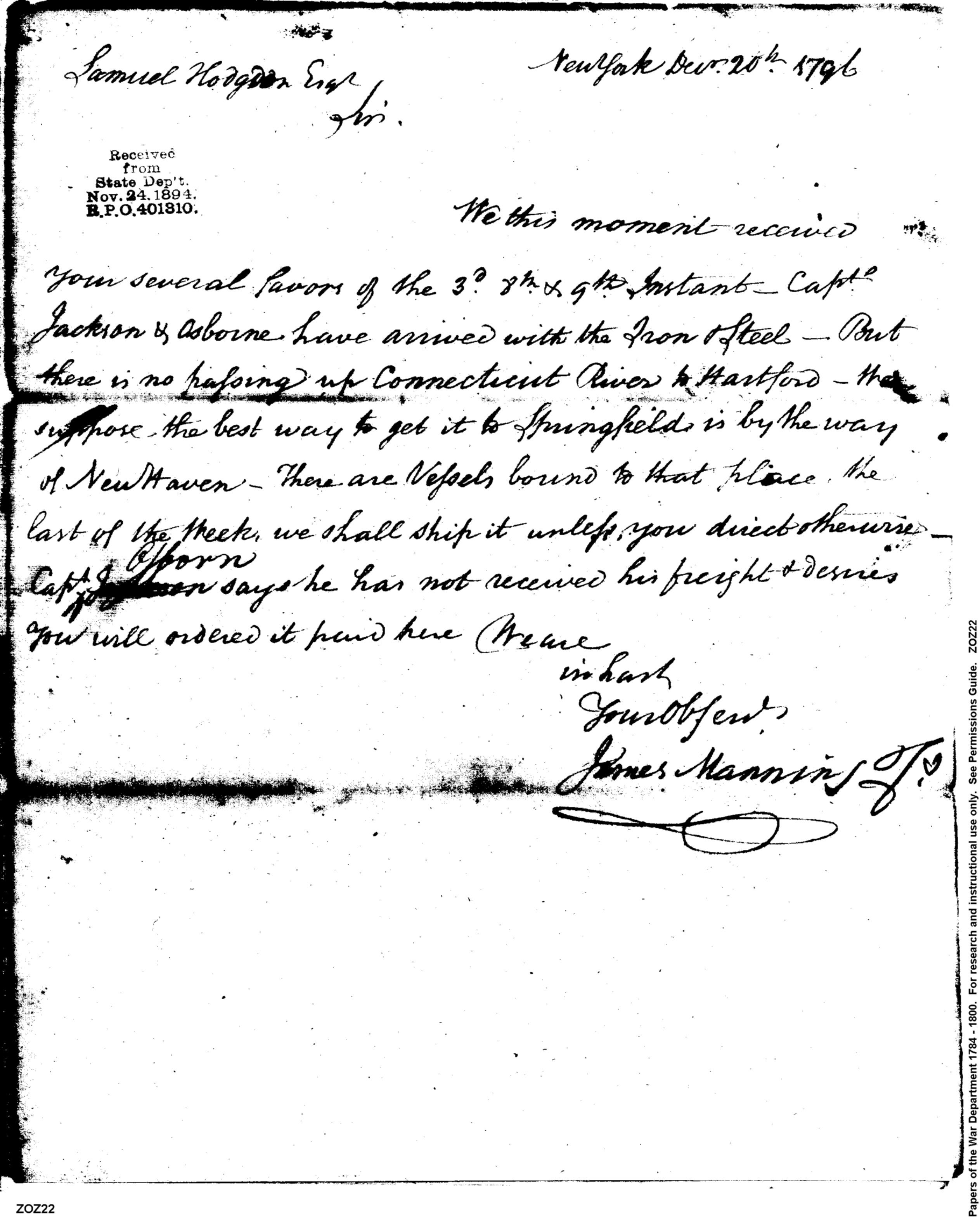 - In source: Collection: Post Revolutionary War Papers, 1784-1815. (RG94)