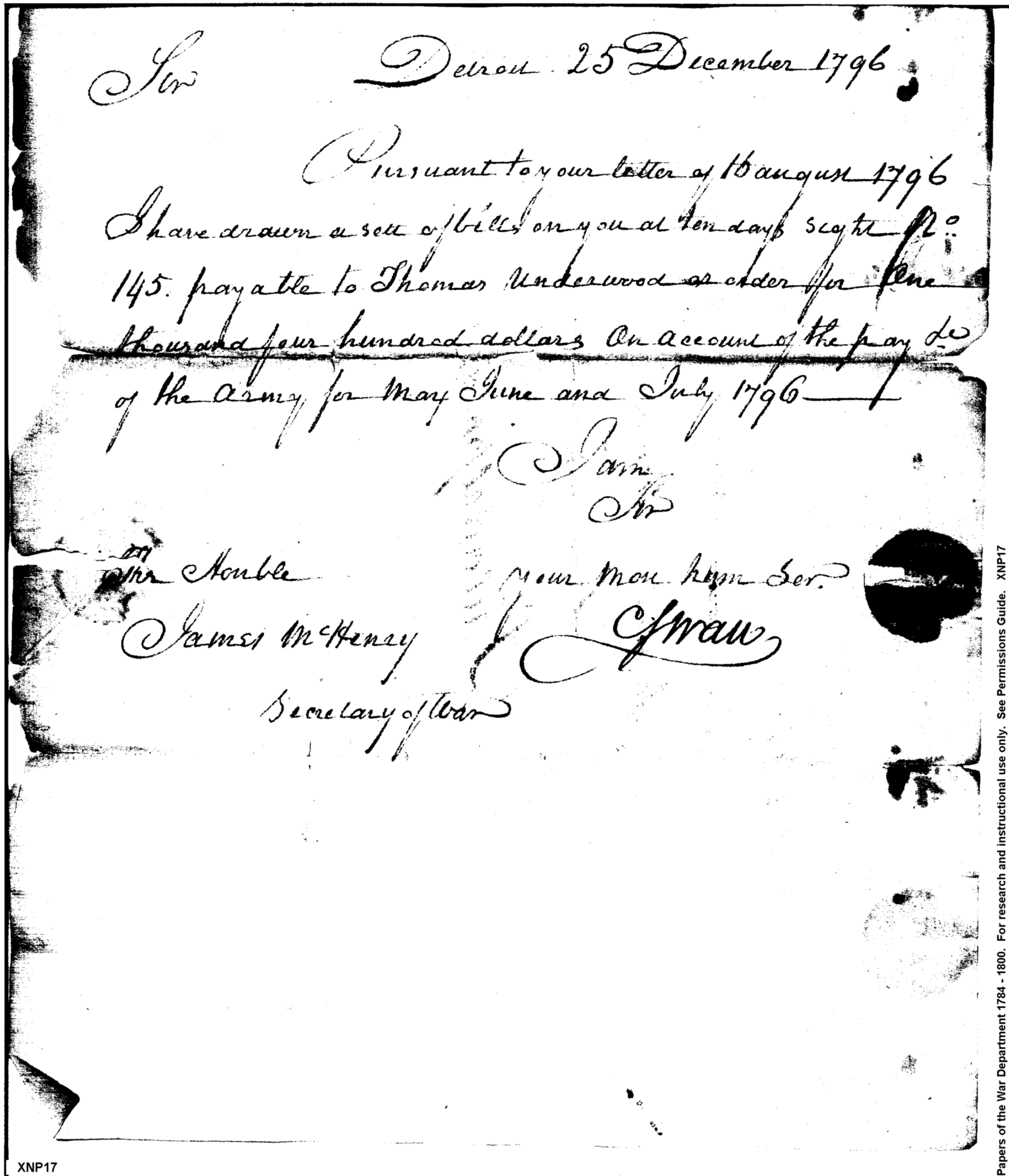 - Document: Pay of the Army for May, June, July 1796
