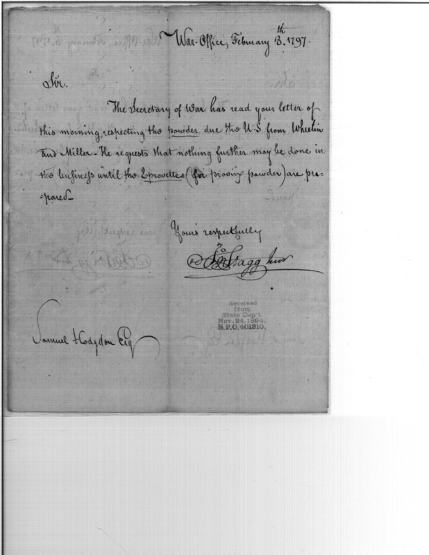 - In source: Collection: Post Revolutionary War Papers, 1784-1815. (RG94)