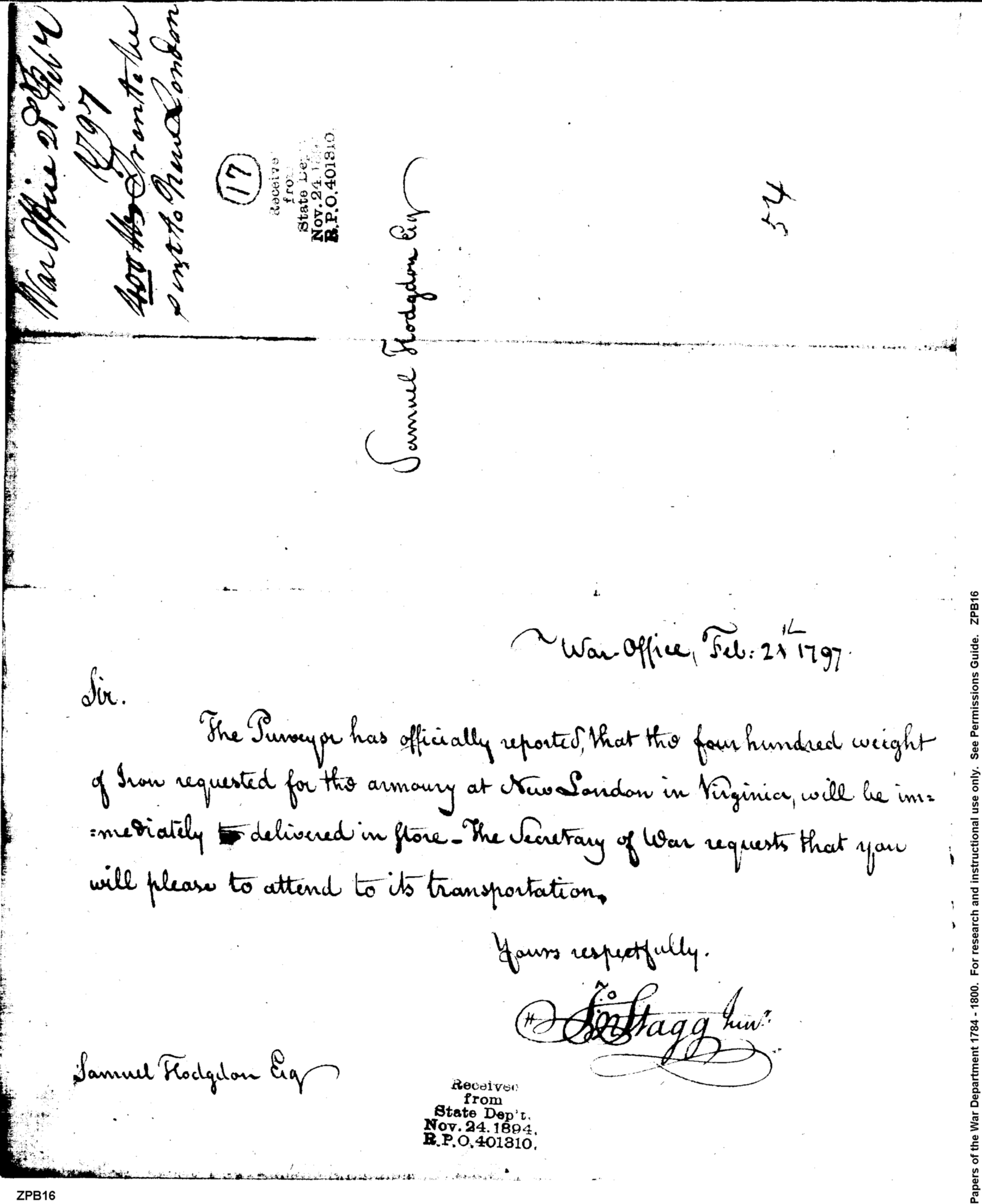 - Document: Delivery of the Iron to the Armory at New London