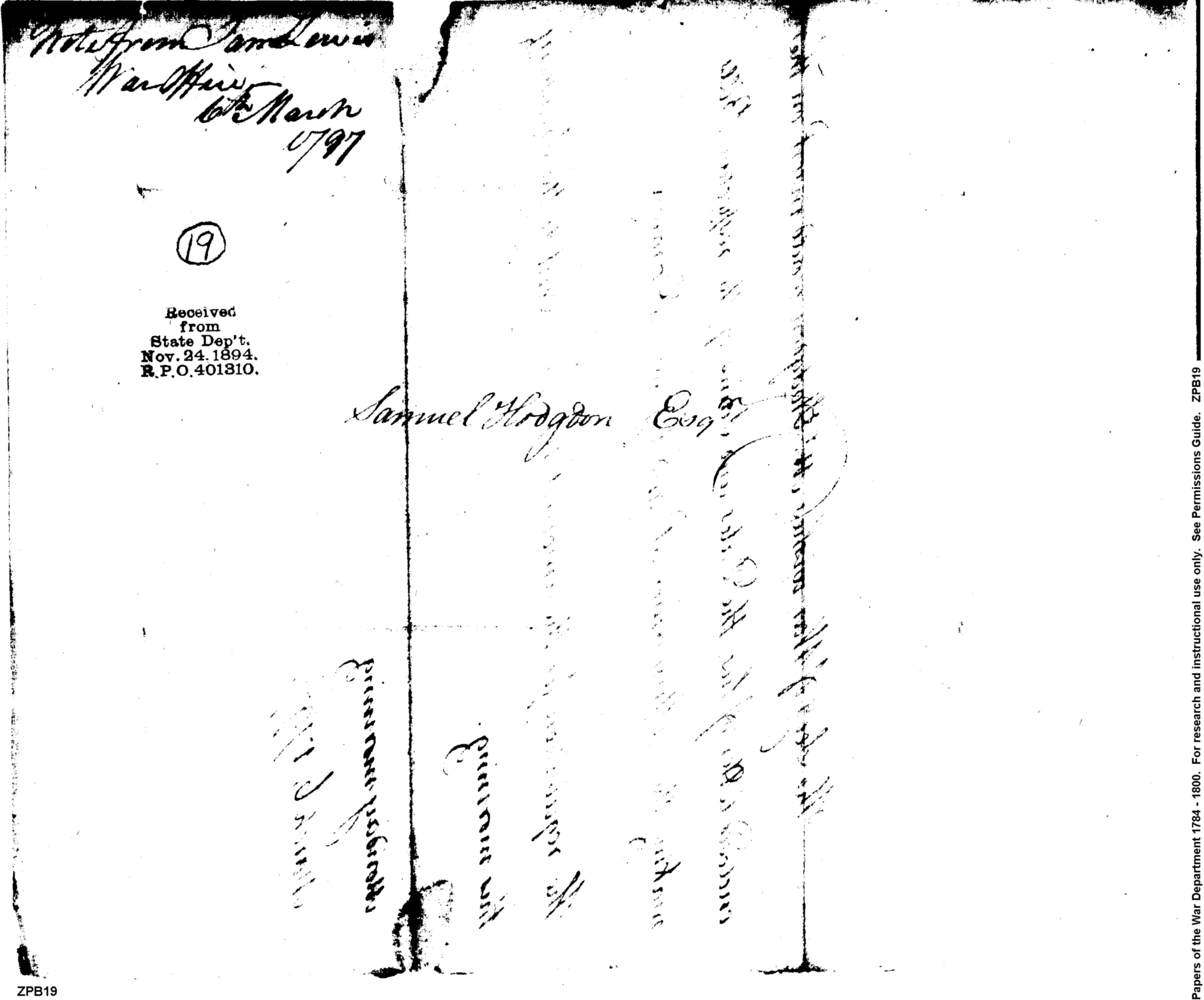 - In source: Collection: Post Revolutionary War Papers, 1784-1815. (RG94)