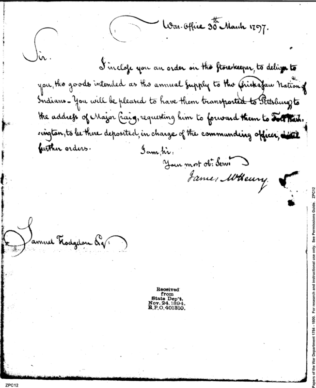 - In source: Collection: Post Revolutionary War Papers, 1784-1815. (RG94)