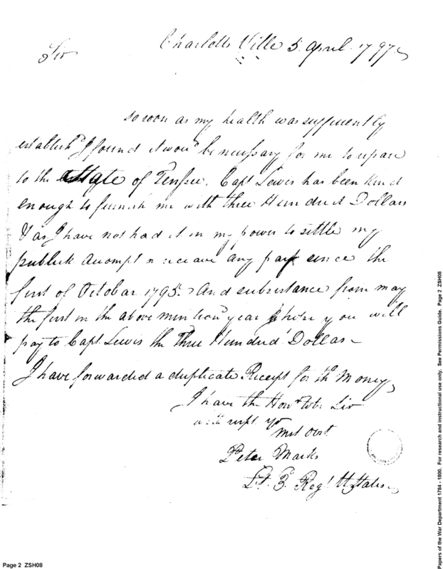 - Document: Receipt of Captain Howell Lewis to Lieutenant Peter Marks of the 3d United States Regiment