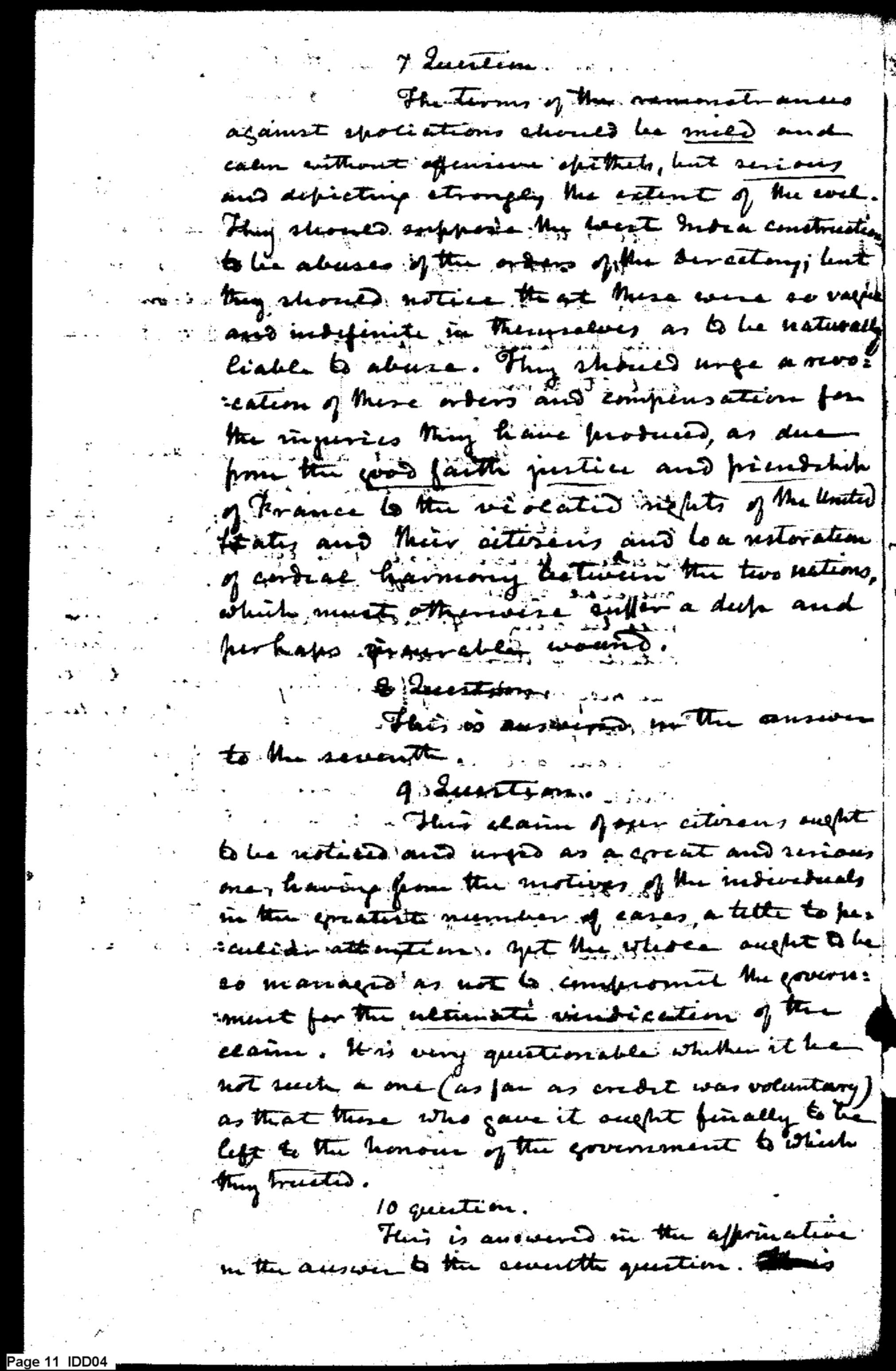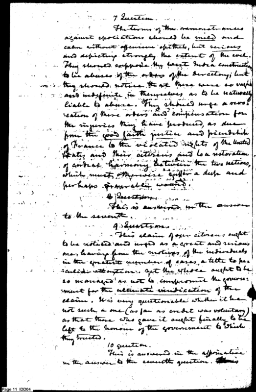 - Document: Detailed Response to Several Inquiries from Adams Regarding Relations with France