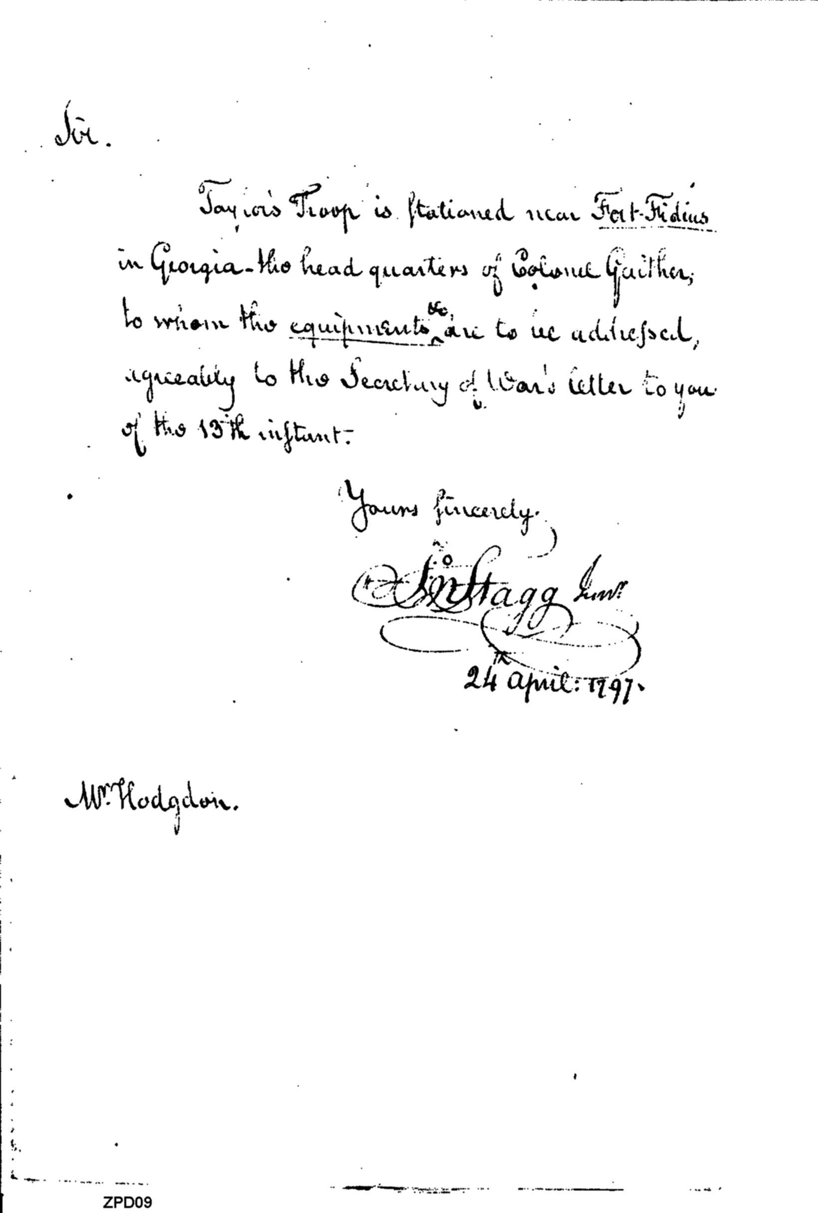 - Document: Equipment Intended for Taylor's Troop