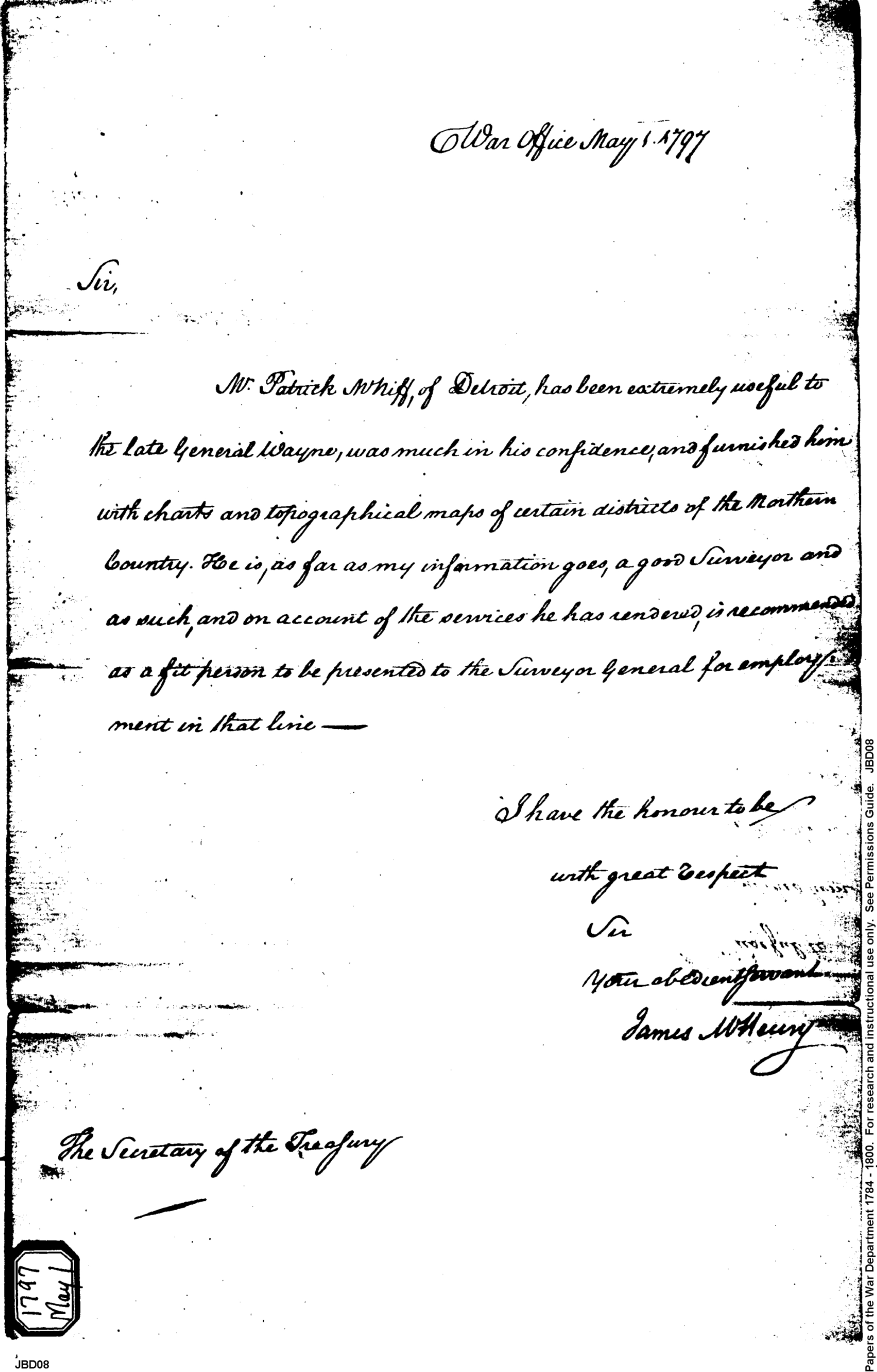 Letter from the Secretary at War