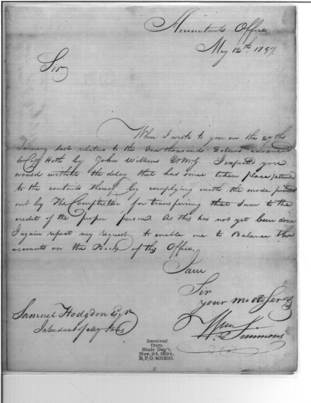 - In source: Collection: Post Revolutionary War Papers, 1784-1815. (RG94)