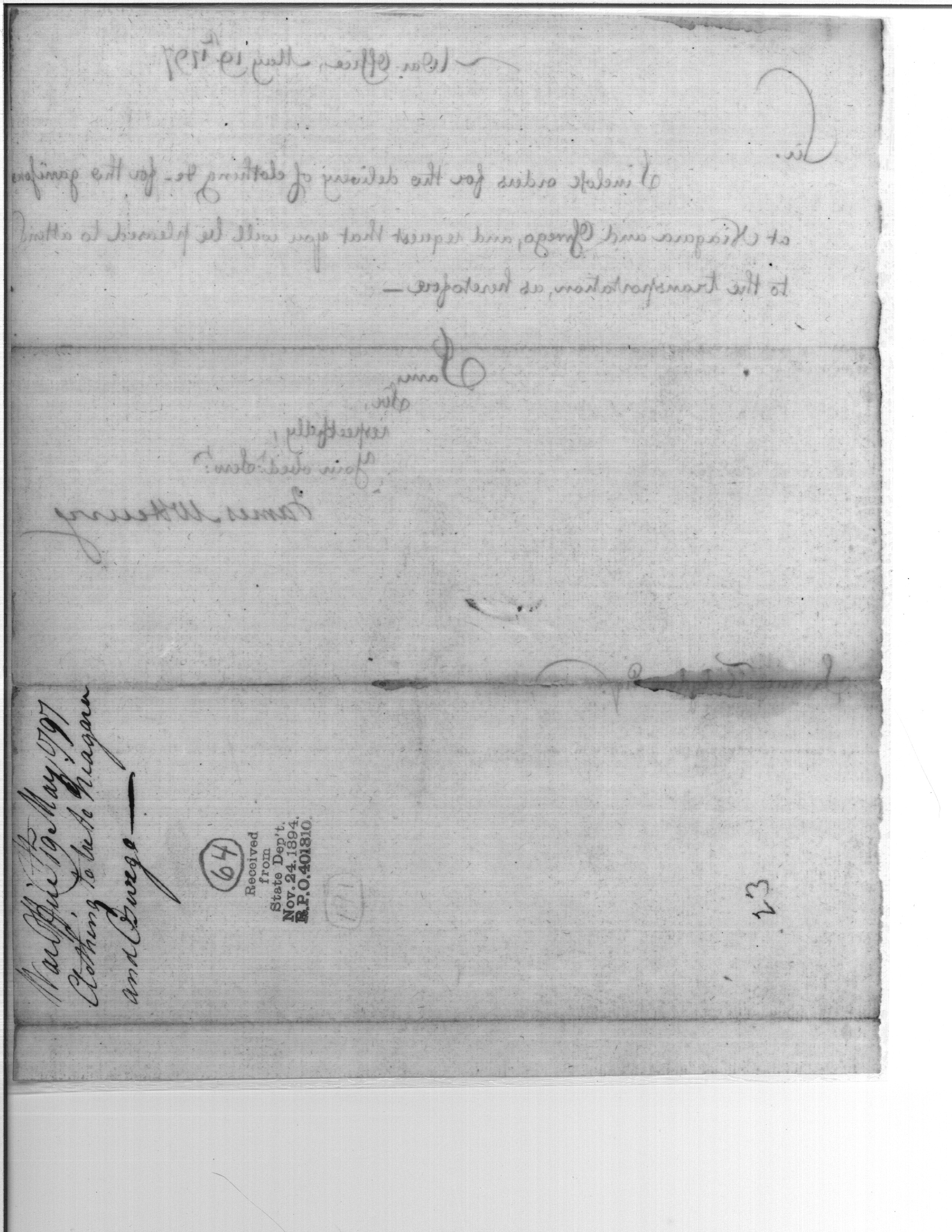 - Document: Delivery of Clothing to Niagara & Oswego
