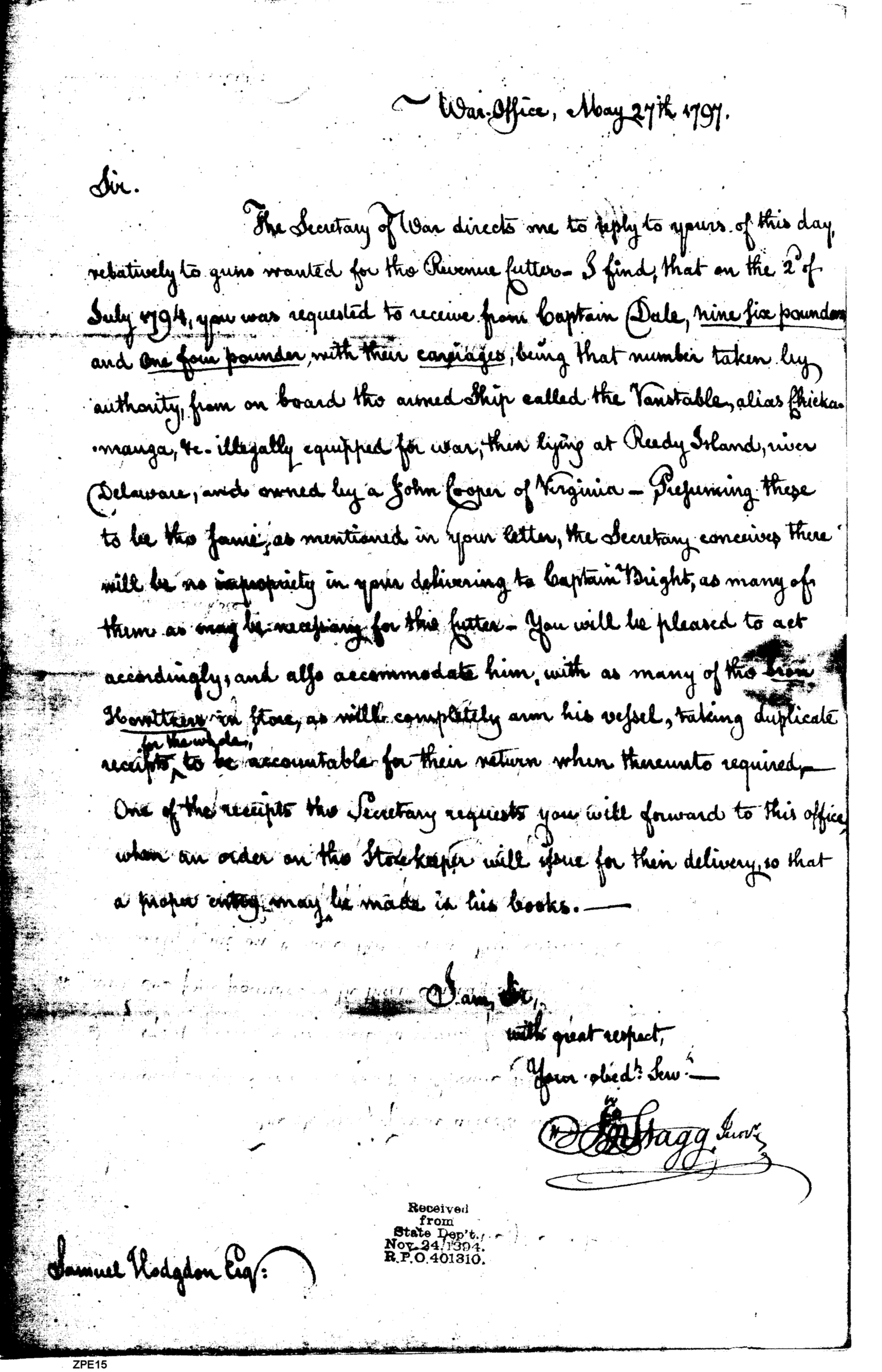 - In source: Collection: Post Revolutionary War Papers, 1784-1815. (RG94)