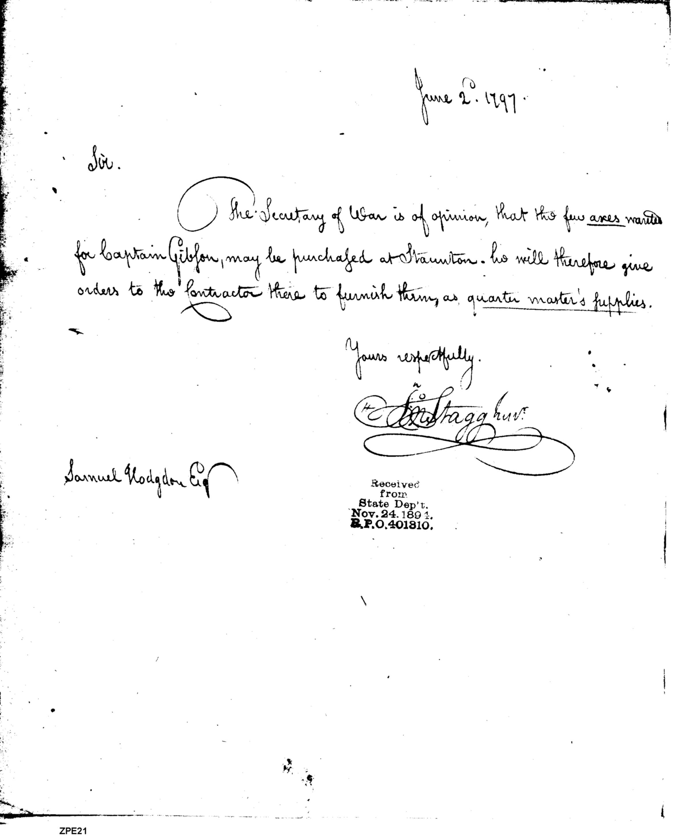- Document: Axes for Gibson May Be Purchased at Staunton