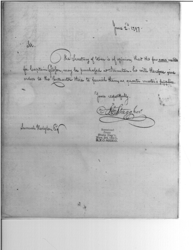 - Document: Axes for Gibson May Be Purchased at Staunton