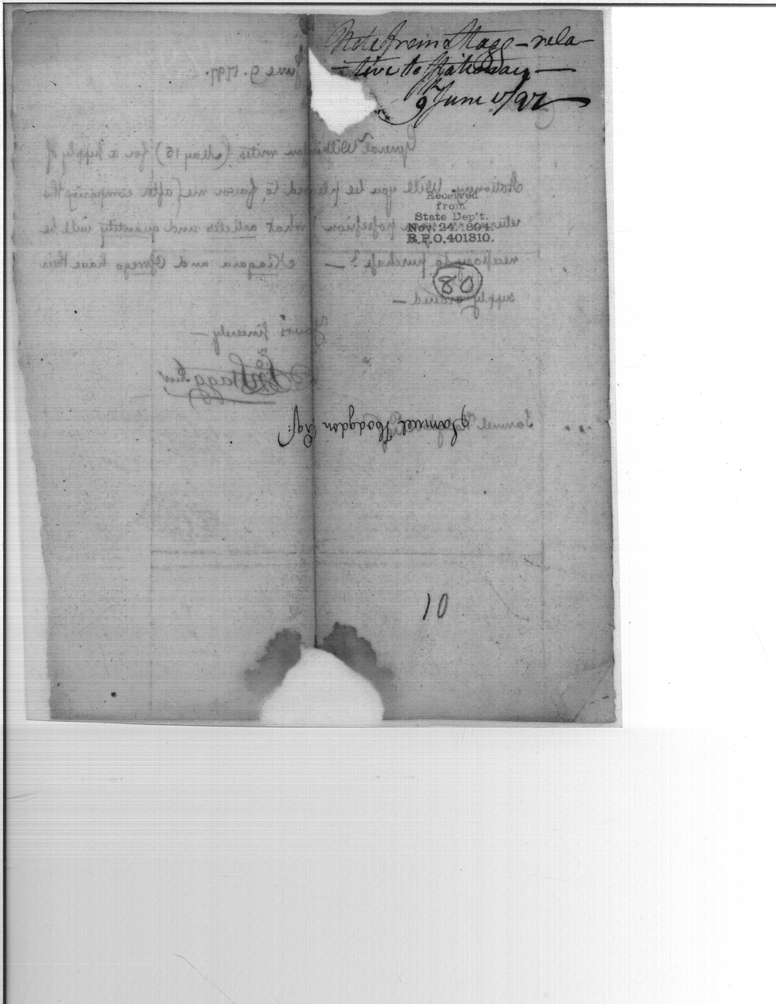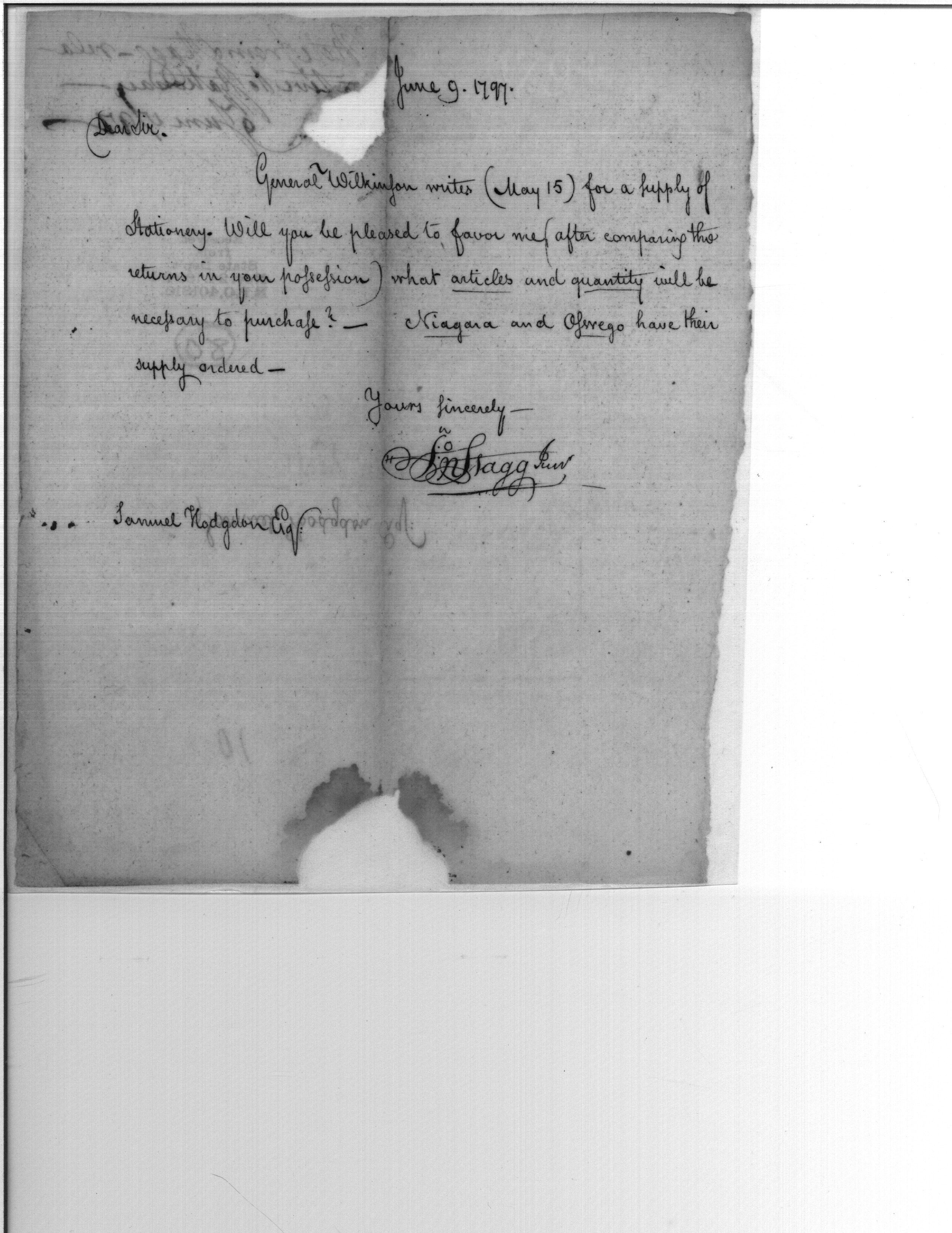 - Document: Stationery for General Wilkinson, Etc.