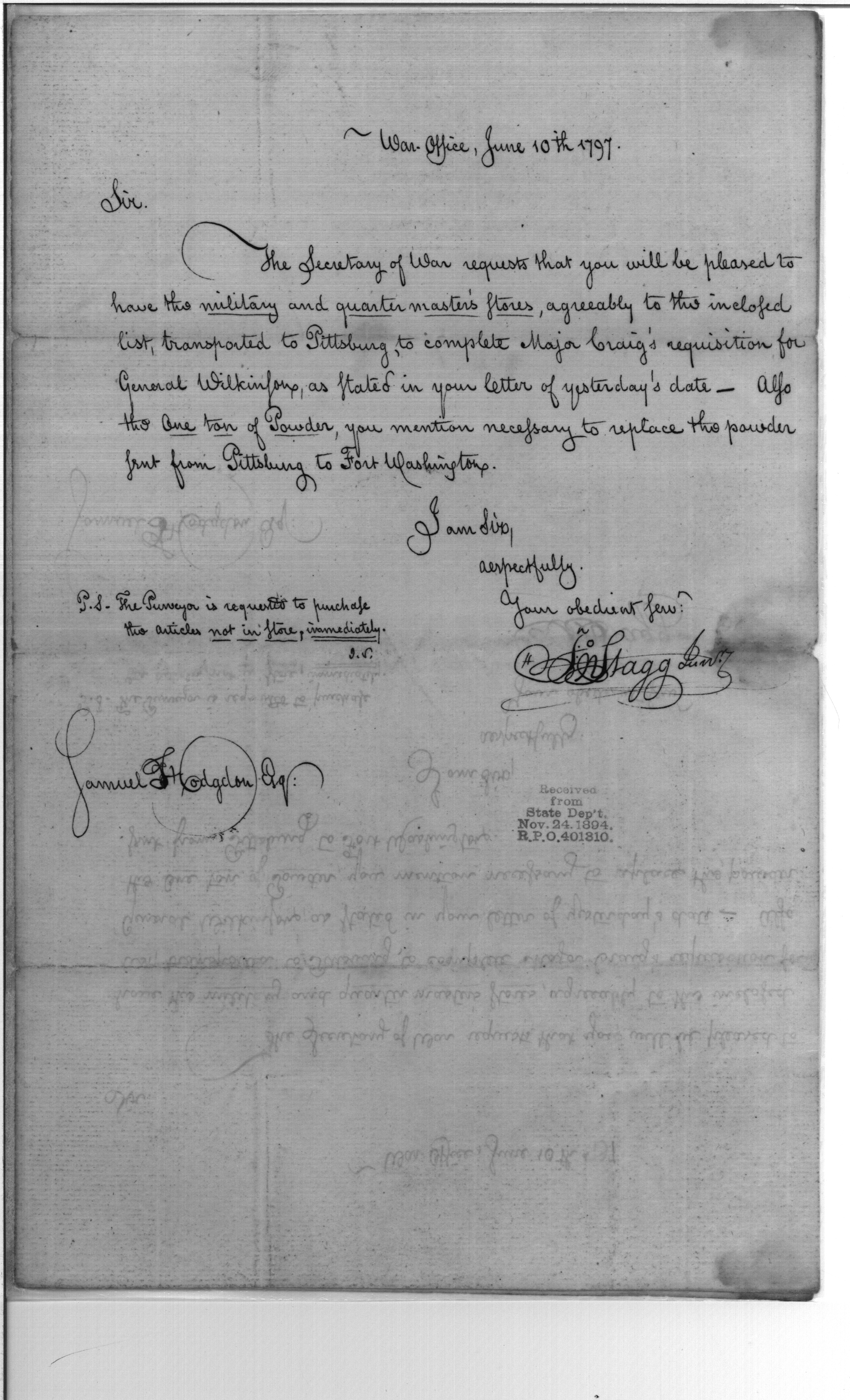 - In source: Collection: Post Revolutionary War Papers, 1784-1815. (RG94)