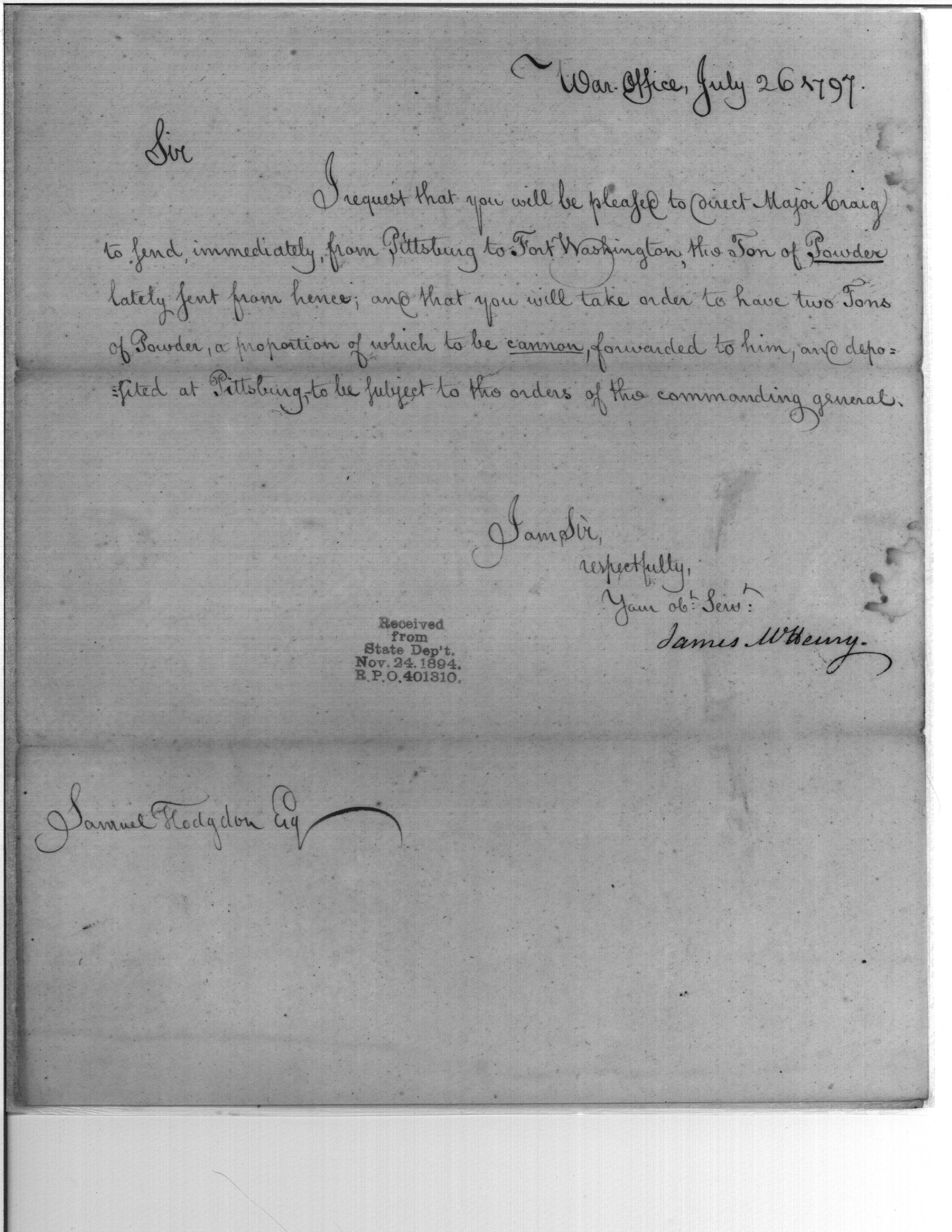 - Document: Powder to Pittsburgh and Fort Washington