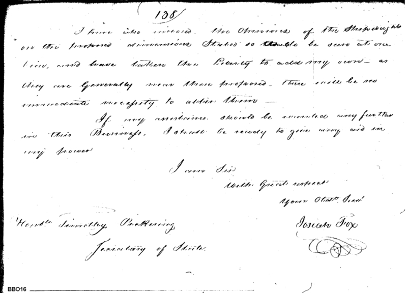 - In source: Collection: Josiah Fox (1763 - 1847) Letterbook Papers. Reel #5 Series 1 Naval Architecture Shipbuilding Papers
