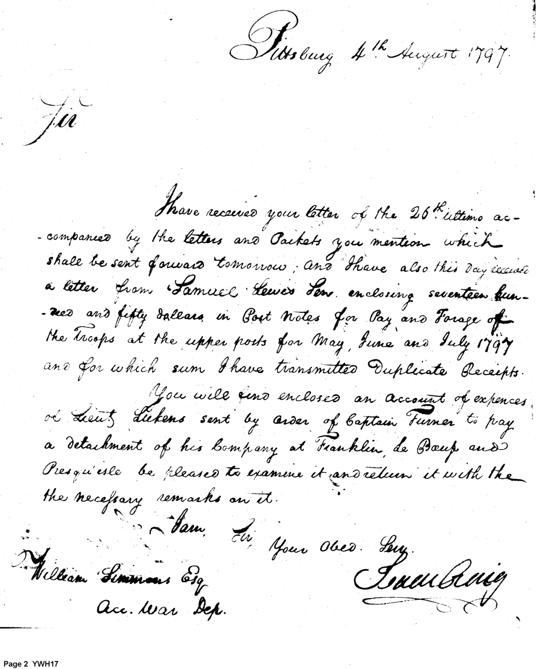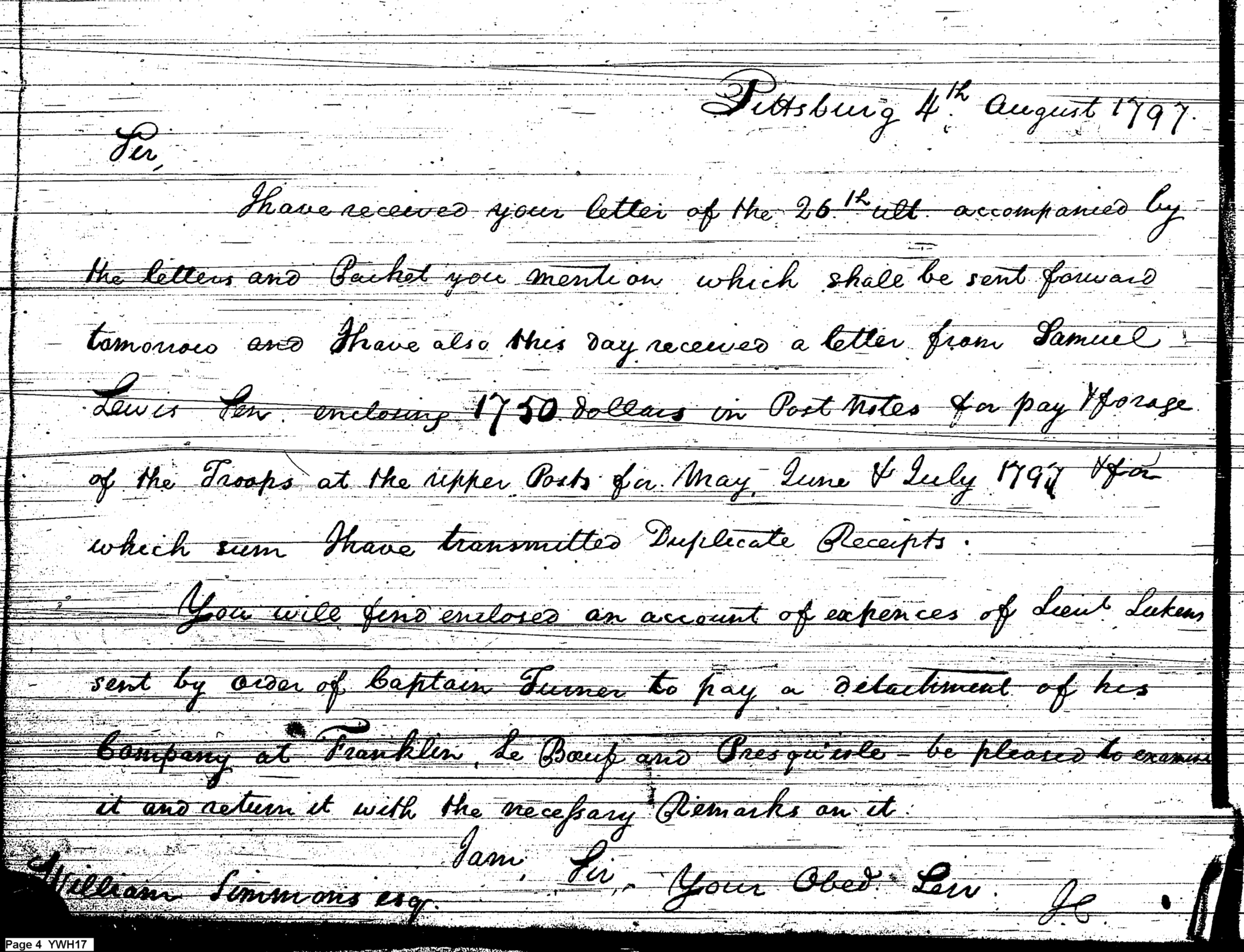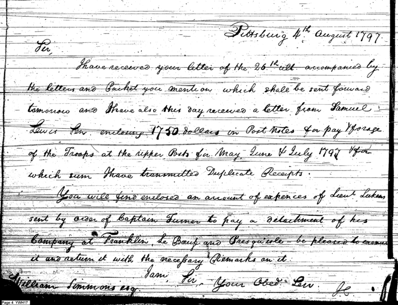 - Document: Major Craig discusses pay and accounting with William Simmons