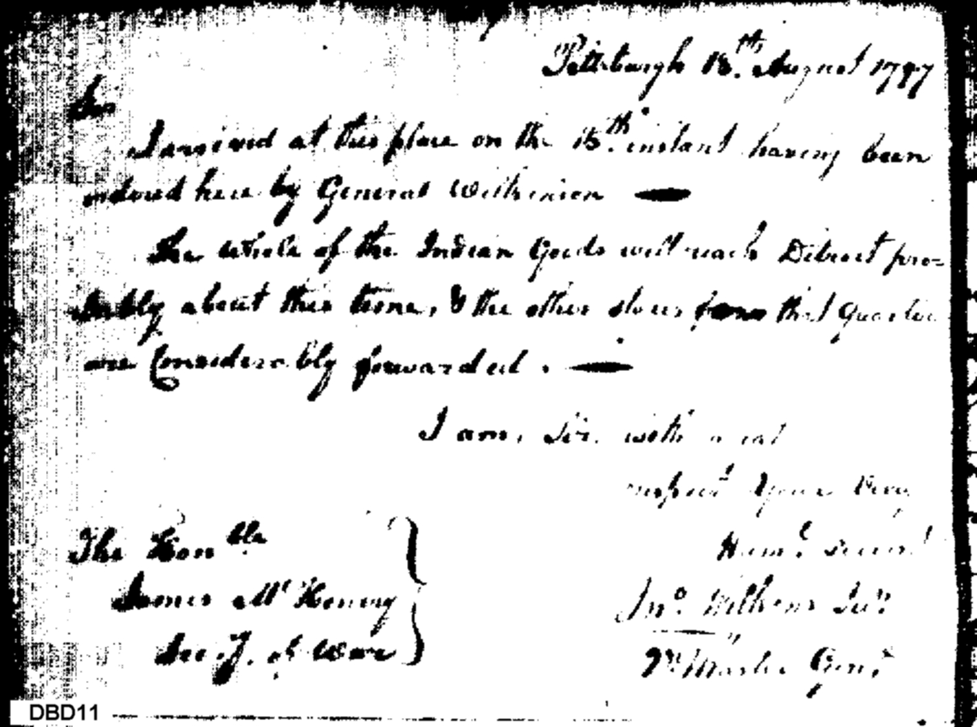 - Document: Notification of Arrival at Pittsburgh, & Indians Goods' Arrival at Detroit