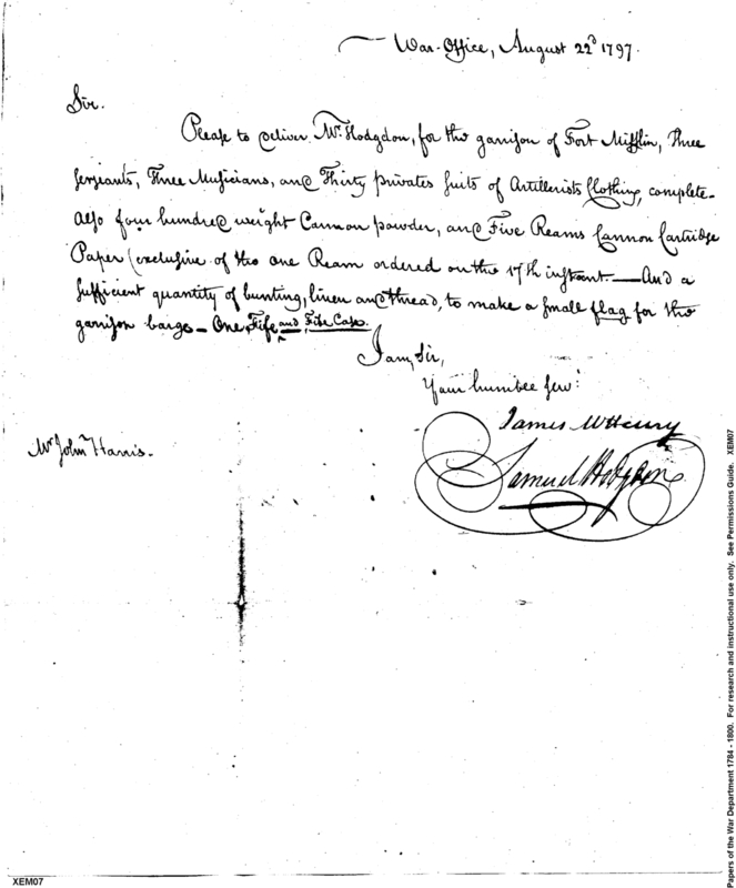 - In source: Collection: Correspondence, Reports, Returns, Bills, Accounts Current' Statements, Receipts, Vouchers and Contracts of Philadelphia Supply Agencies (Coxe and Irvine Papers), 1794-1842. (RG92)