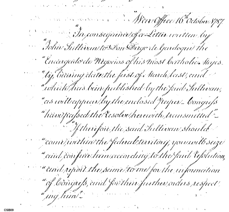 - Document: Regarding letter written by John Sullivan to don Dieg de Gardoqui, the encargado de negotios of his most catholick majesty