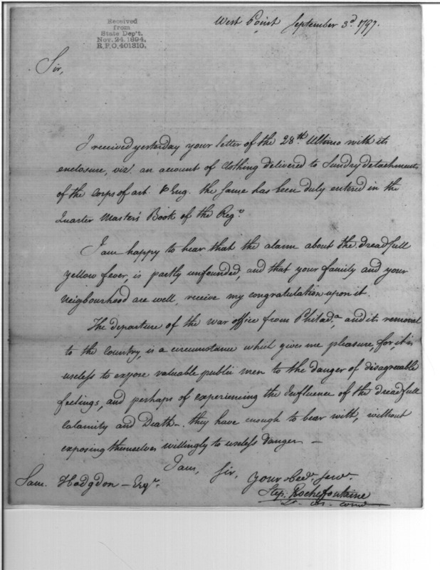 - In source: Collection: Post Revolutionary War Papers, 1784-1815. (RG94)