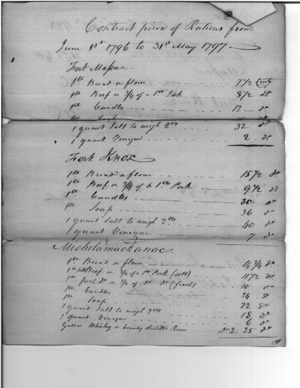 - Document: Contract price of rations for 1797 and 1798