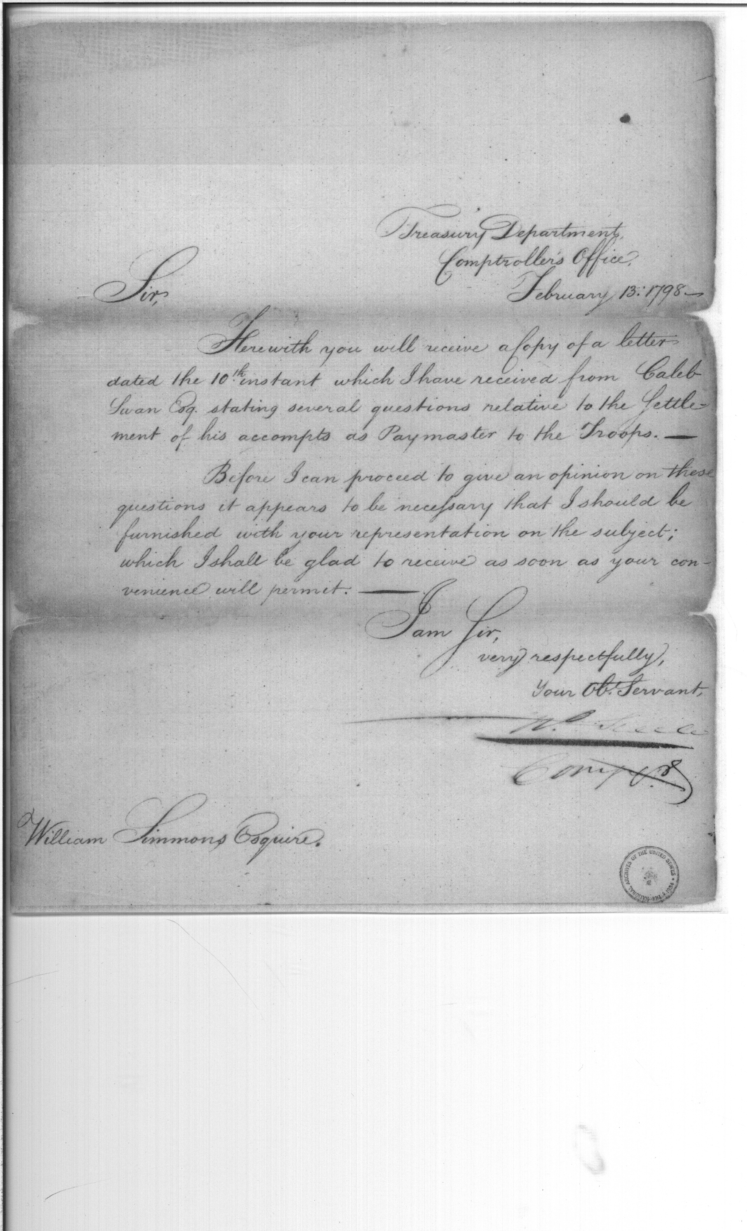 Document ViewerRequest for opinion regarding Caleb Swan questions about settlement of accounts
