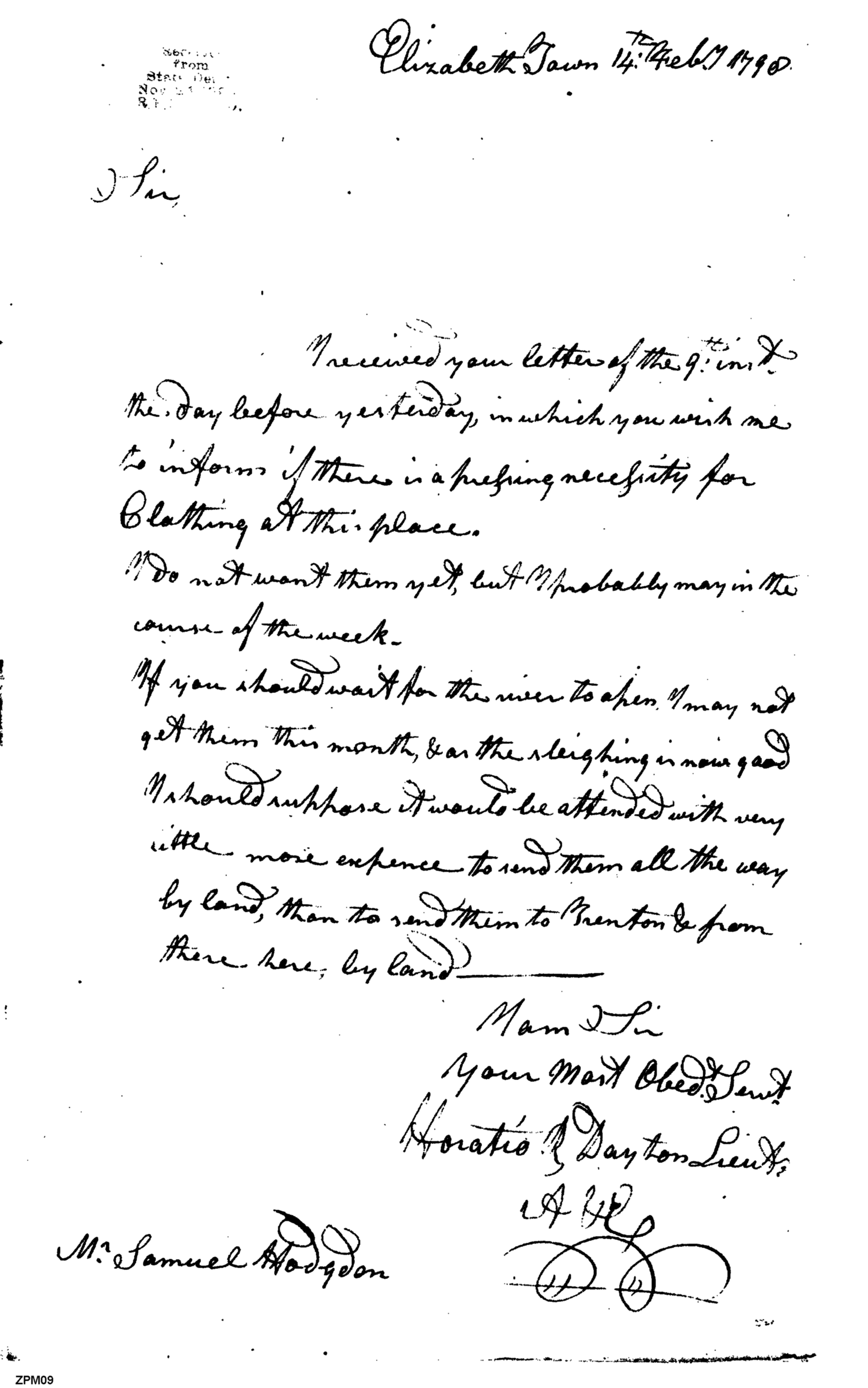 - Document: Transporting the Clothing to Elizabeth Town