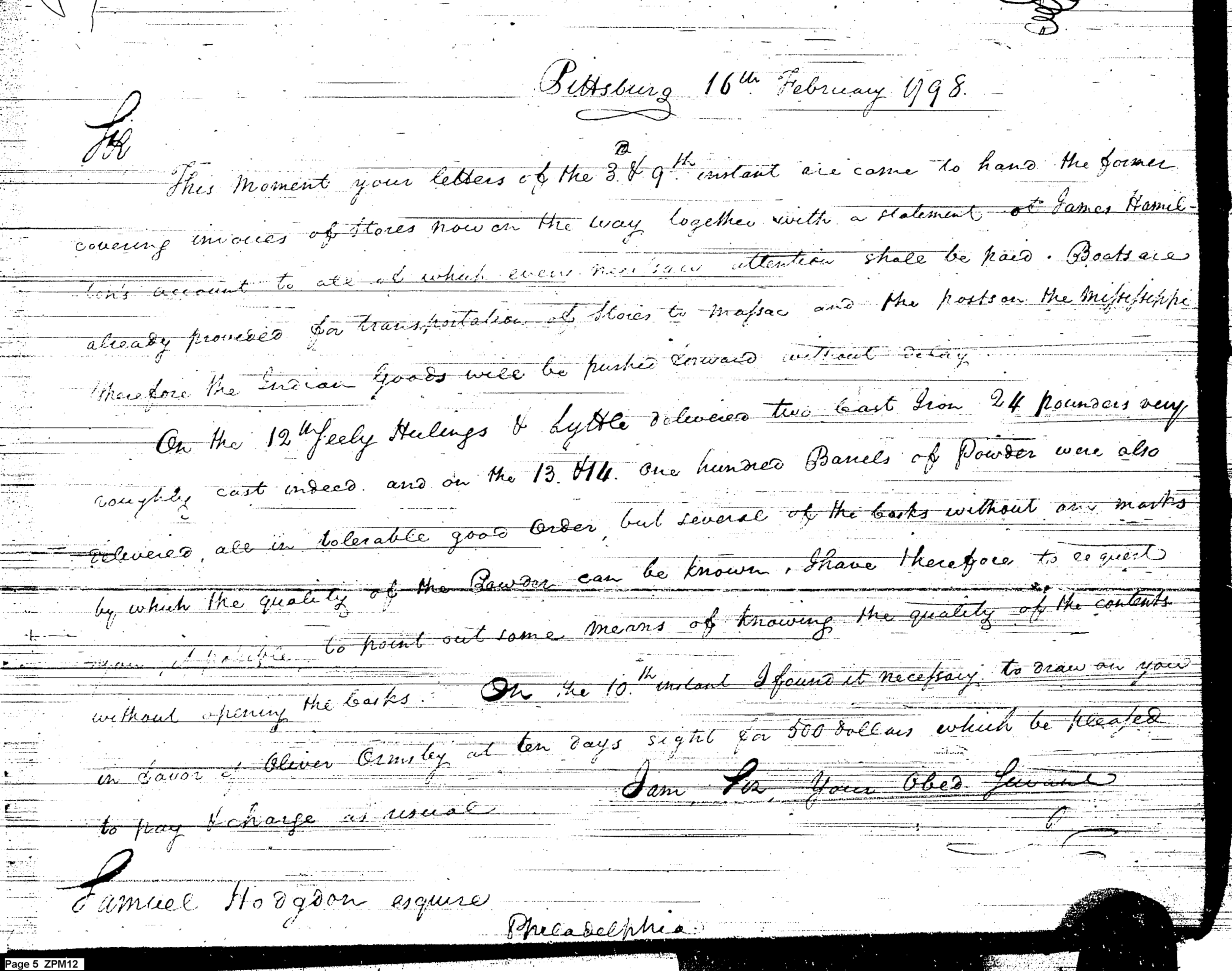 - Document: Cannon Are Received & Indian Goods Sent Forward