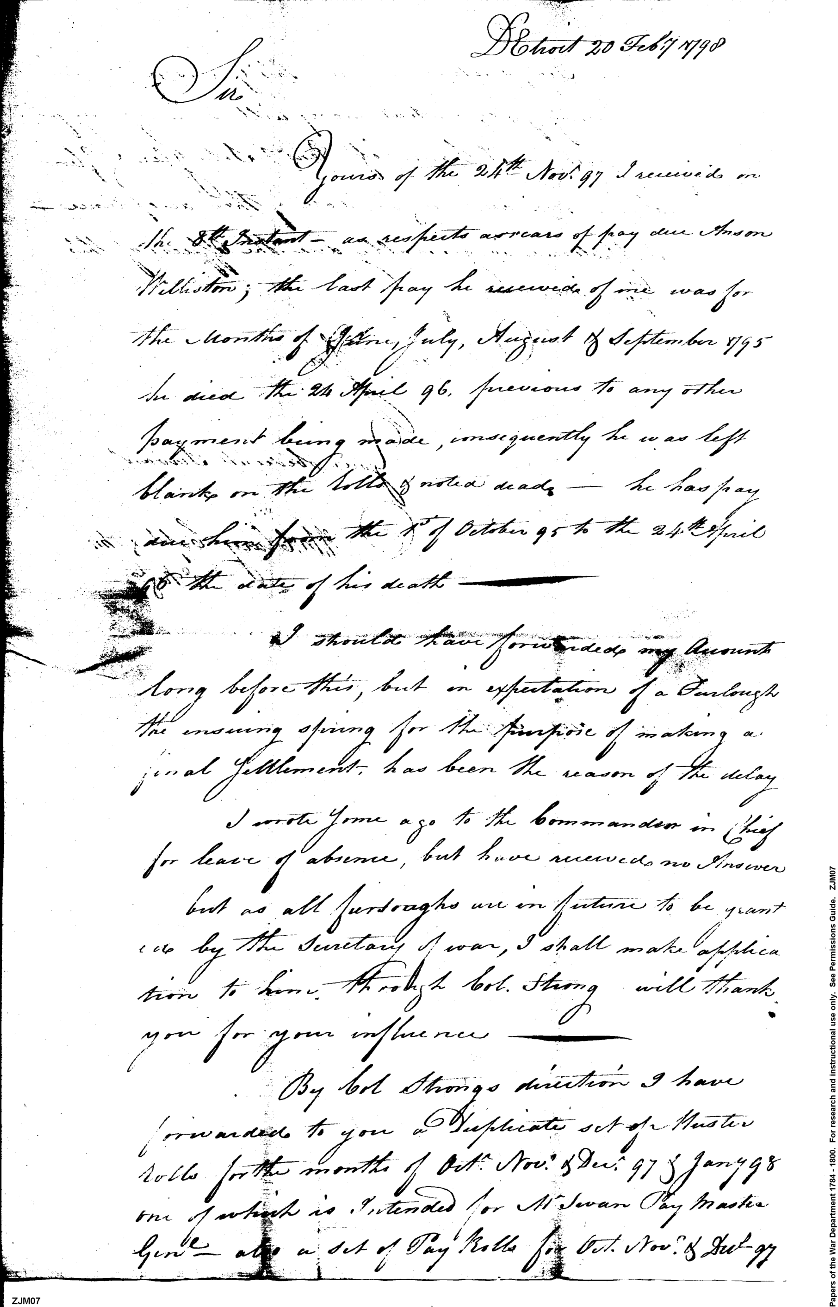 - In source: Collection: Post Revolutionary War Papers, 1784-1815. (RG94)