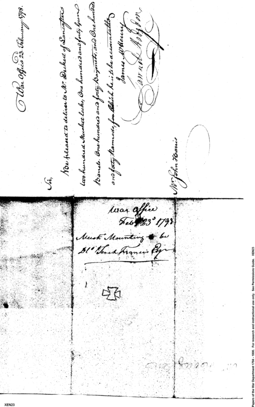 - In source: Collection: Correspondence, Reports, Returns, Bills, Accounts Current' Statements, Receipts, Vouchers and Contracts of Philadelphia Supply Agencies (Coxe and Irvine Papers), 1794-1842. (RG92)