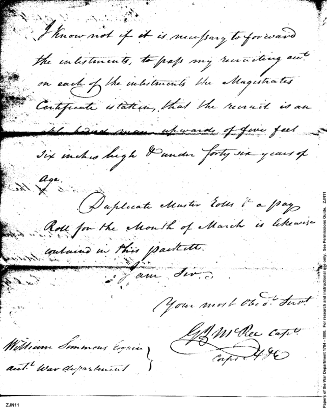 Post Revolutionary War Papers, 1784-1815. (RG94)
