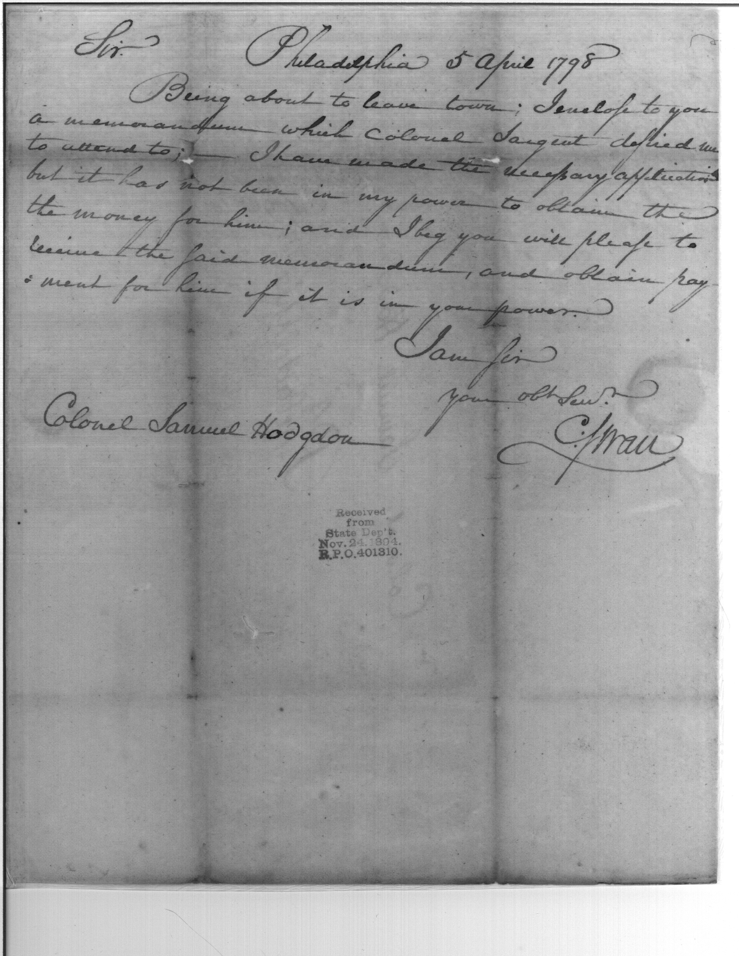 Payment to Colonel Sargent