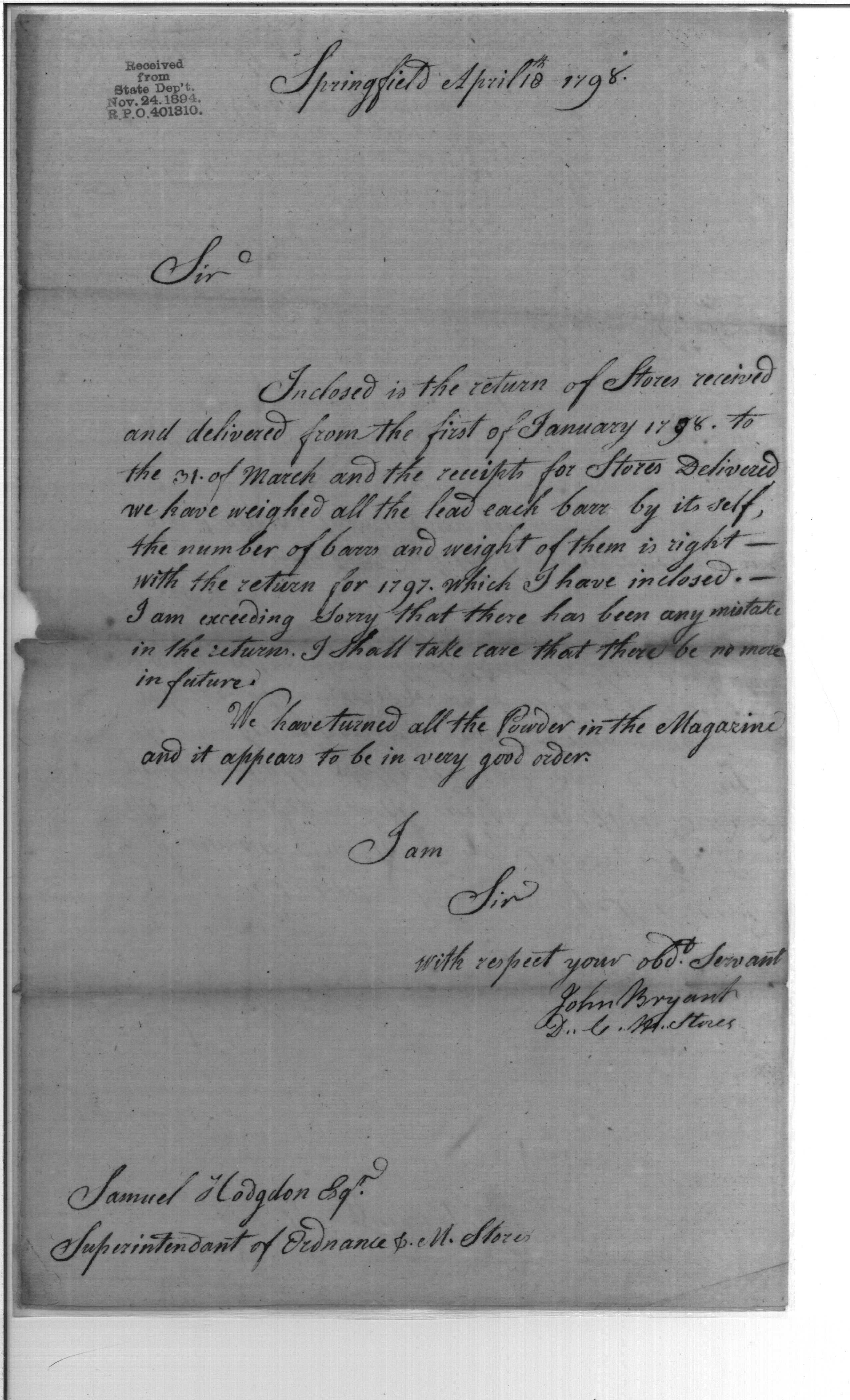 - Document: Return for Stores Received and Delivered