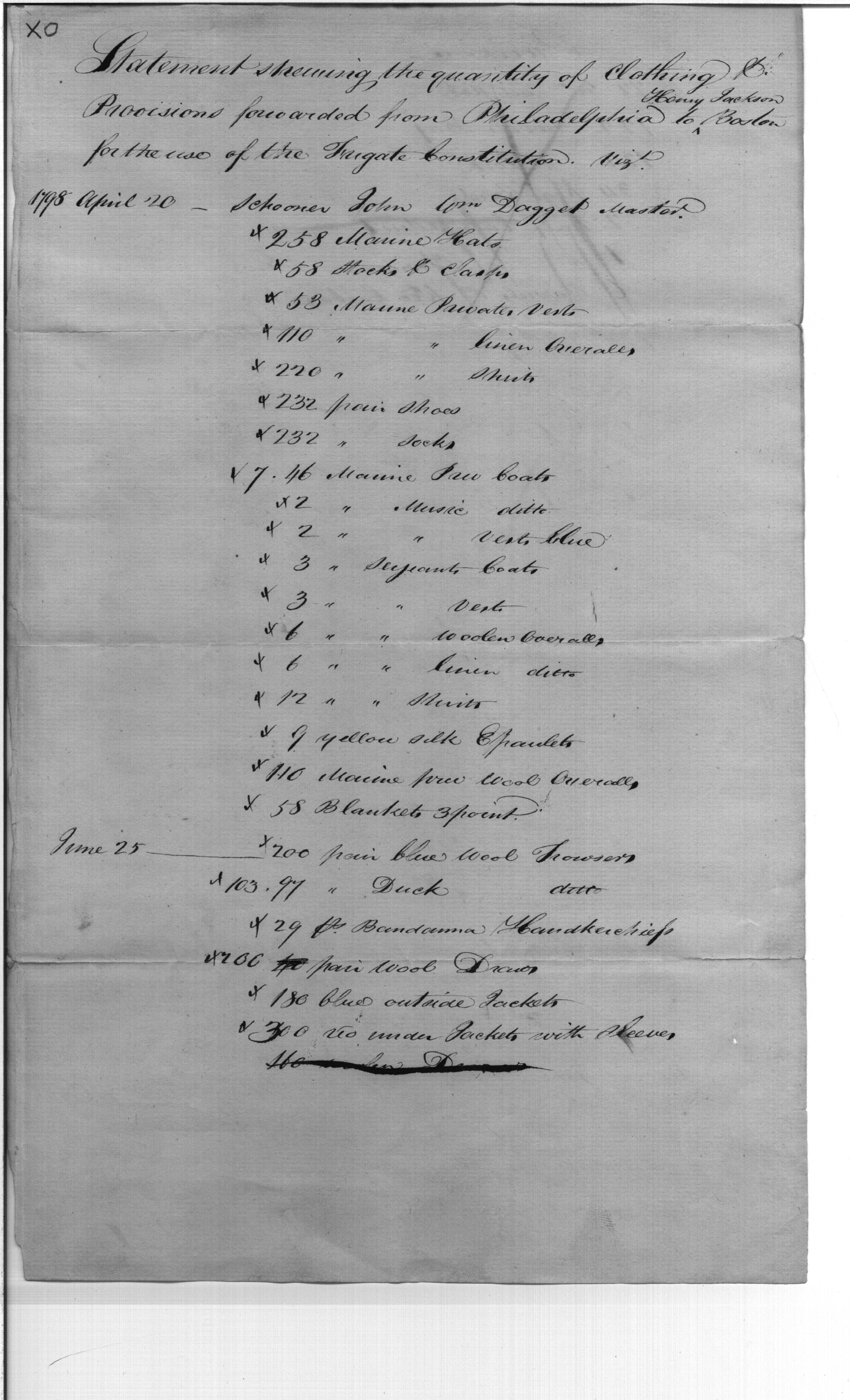- Document: Clothing & Provisions for the Frigate "Constitution"