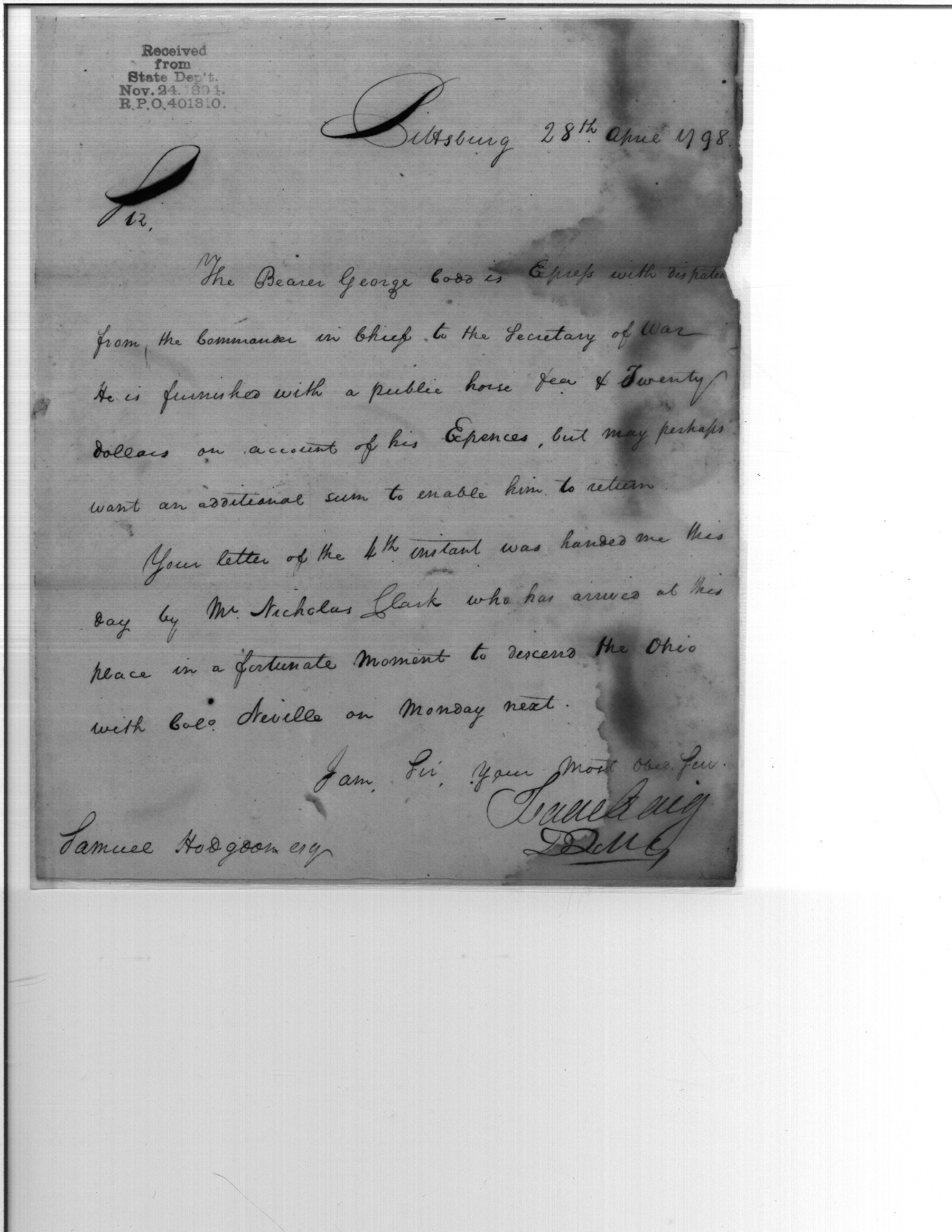 Receipt of Dispatches
