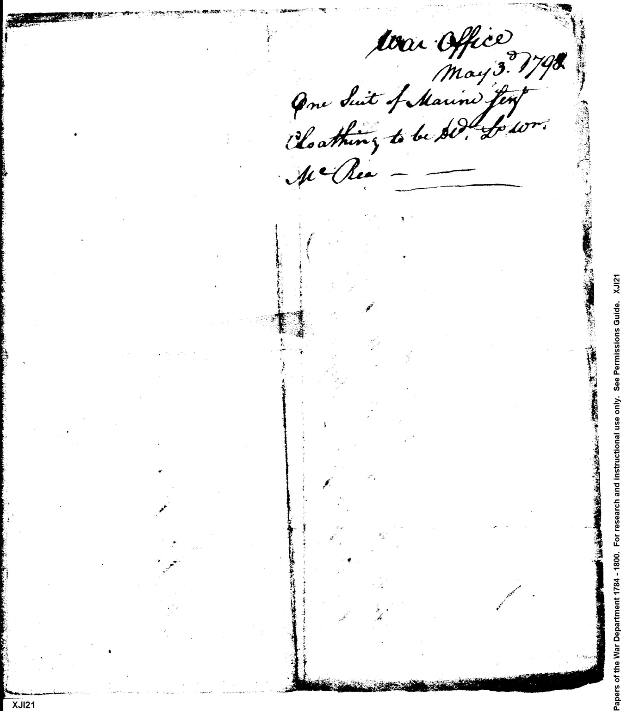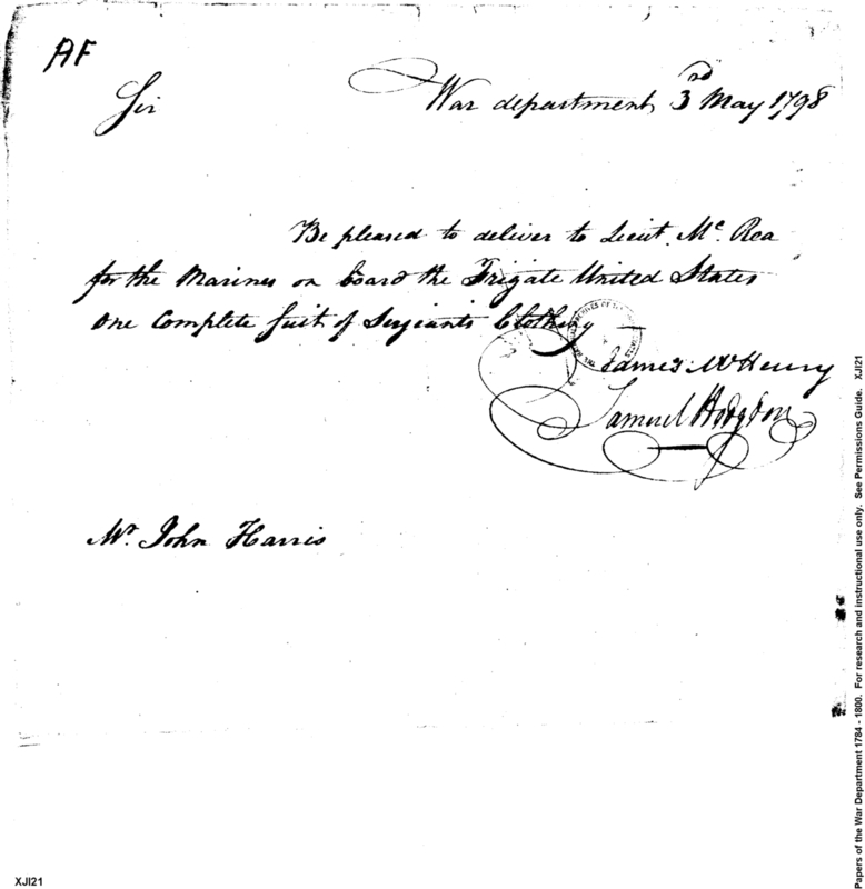 - Document: Sergeant's Suit of Clothing to Lieutenant McRea