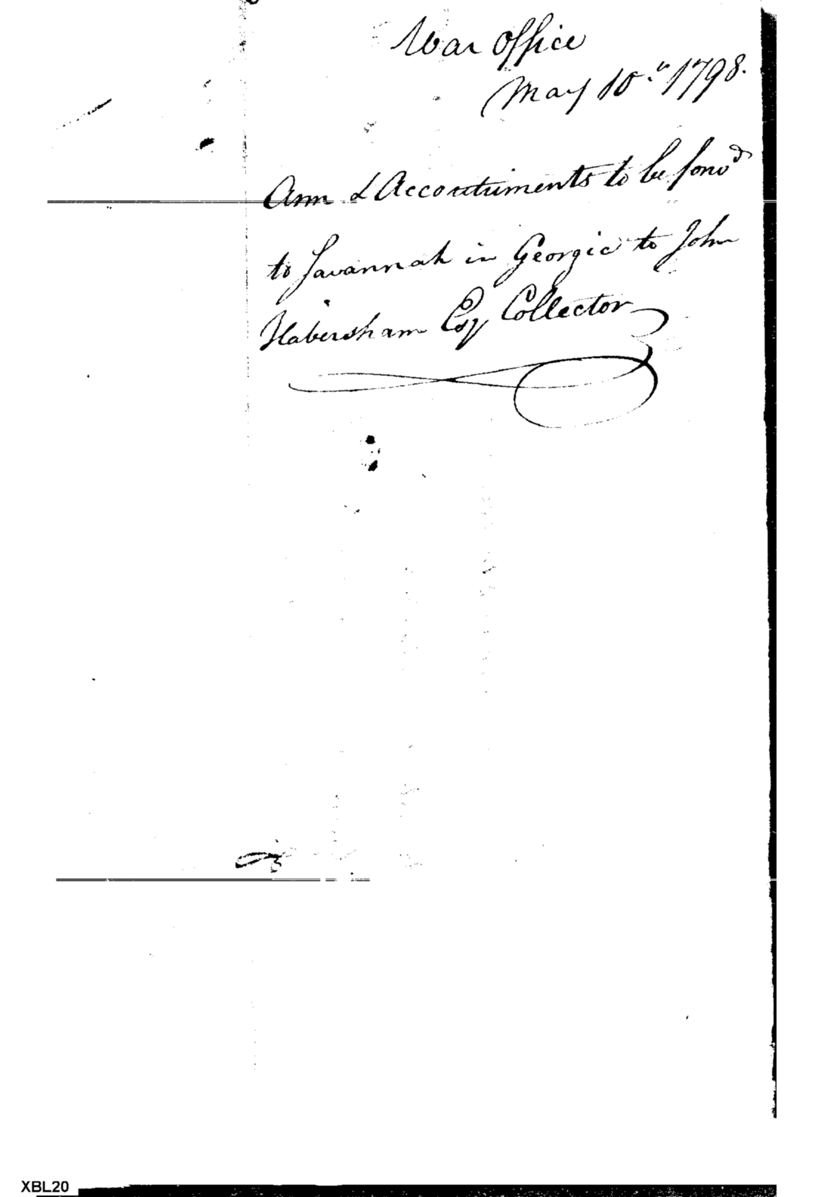 - Document: Request for Issue of Arms, Accoutrements & Ammunition to Savannah