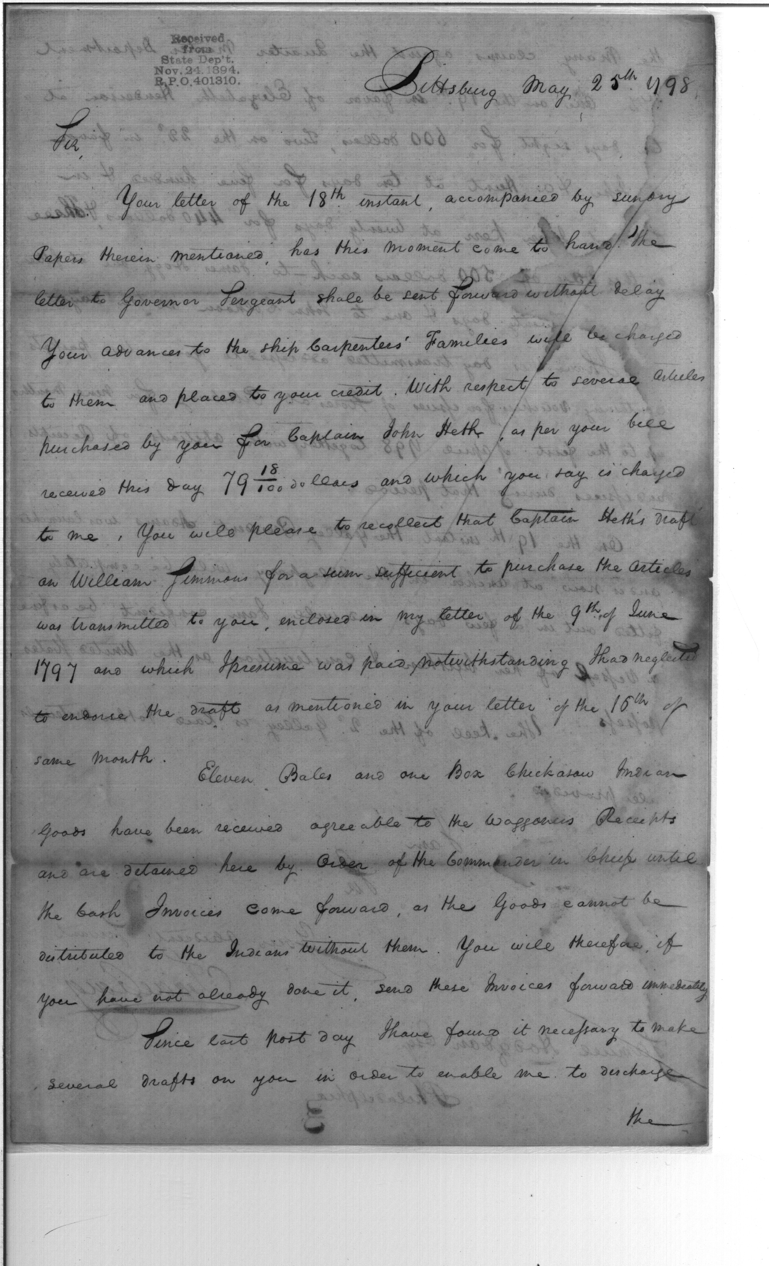 - Document: Receipt of Chickasaw Goods, Etc.