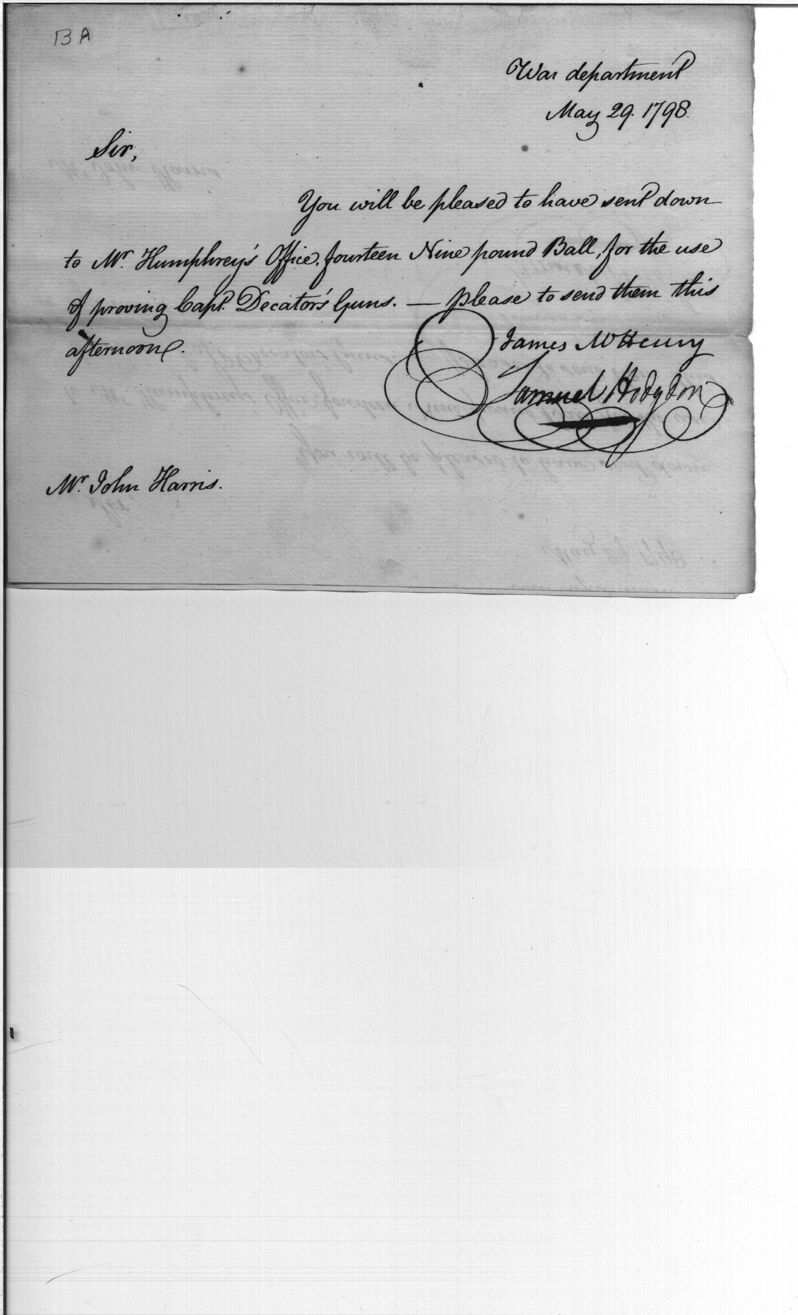 - Document: Nine-Pound Ball to Prove Captain Decator's Guns