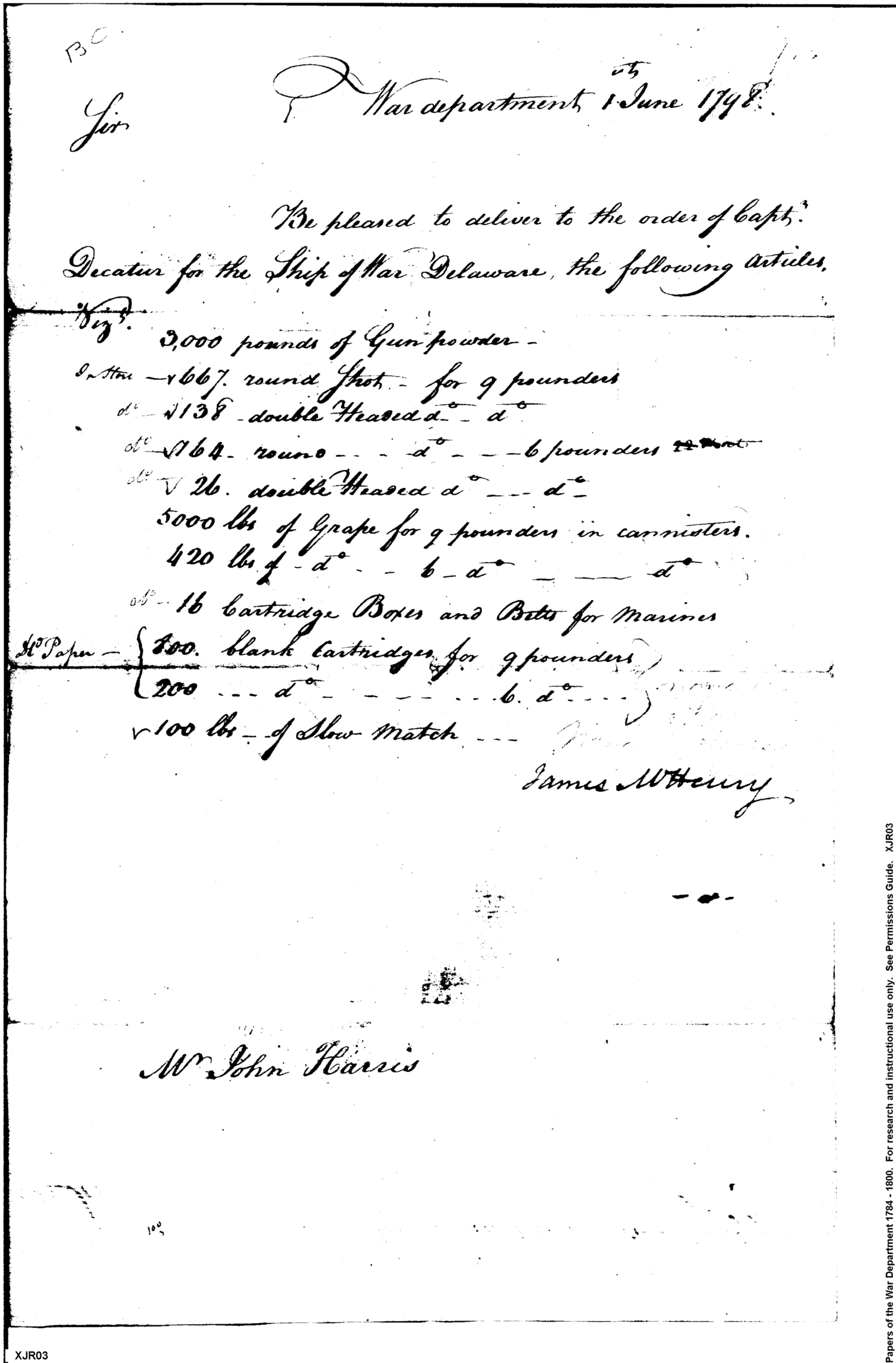 - Document: Articles to Captain Decatur for the Ship of War "Delaware"