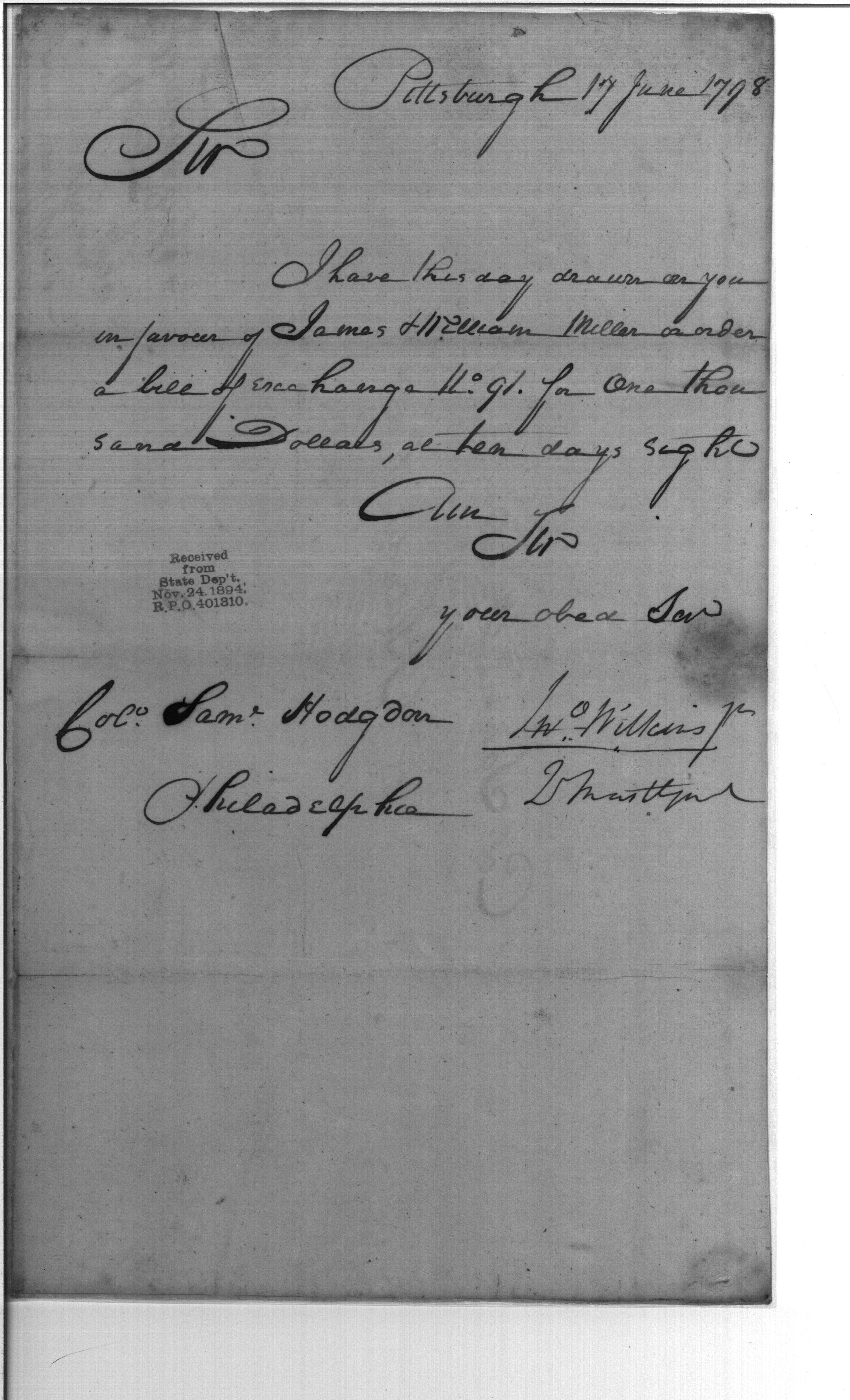 - Document: Bill of Exchange in Favor of James & William Miller