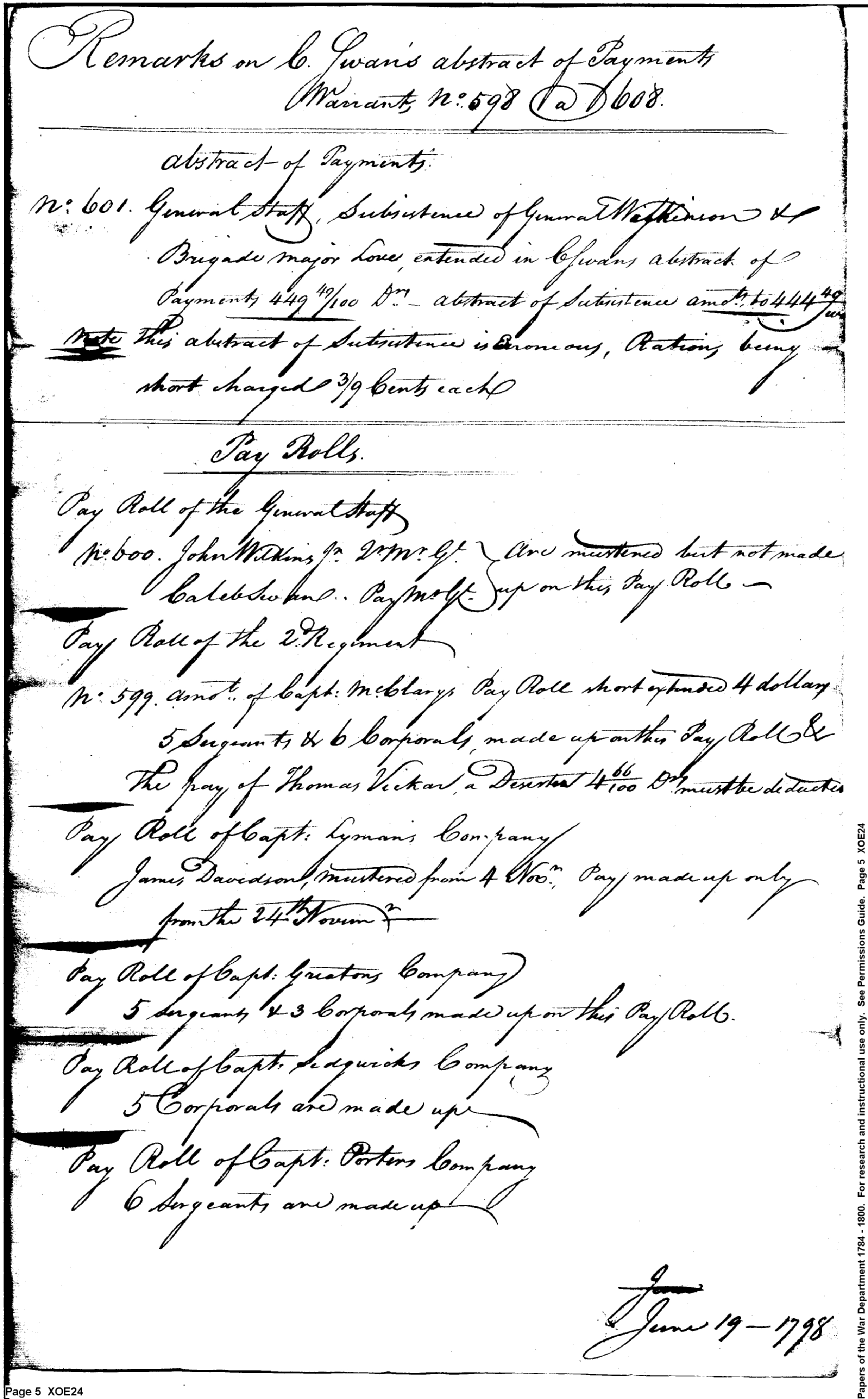 Post Revolutionary War Papers, 1784-1815. (RG94)