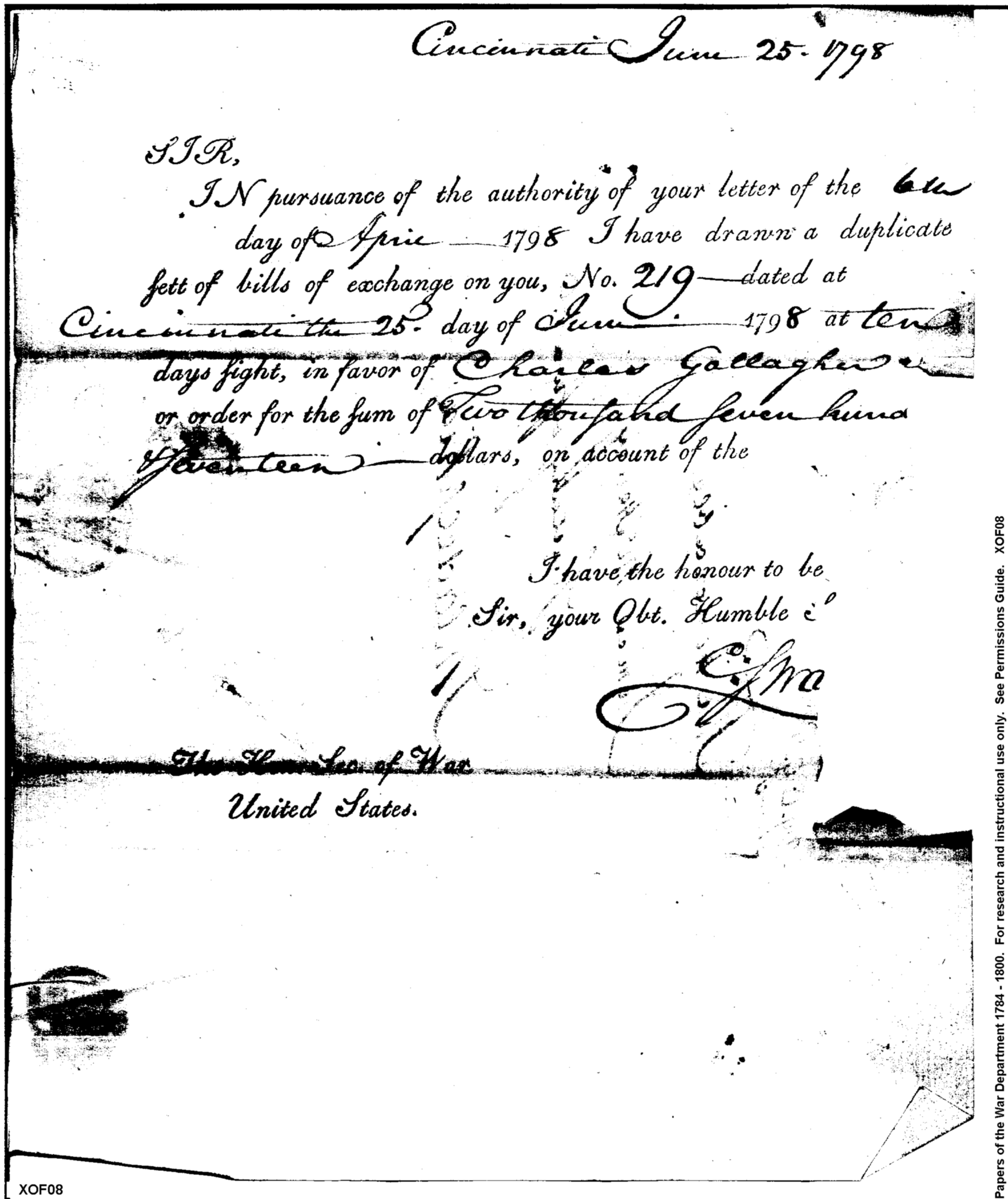 - Document: Bill of Exchange in Favor of Charles Gallagher