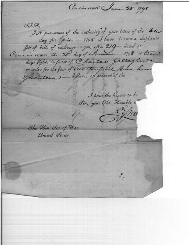 - Document: Bill of Exchange in Favor of Charles Gallagher