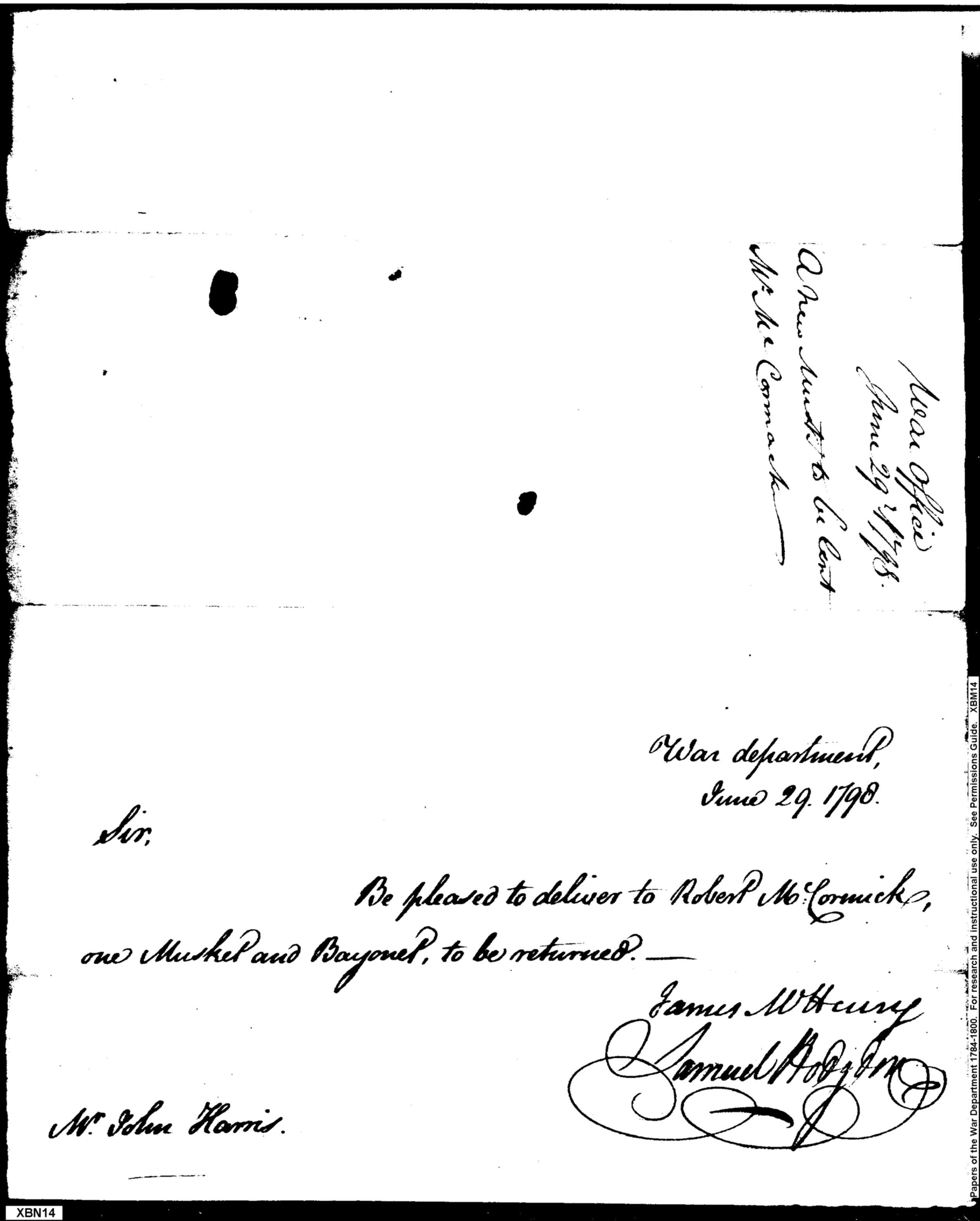 - Document: Request for Temporary Issue of a Musket & Bayonet