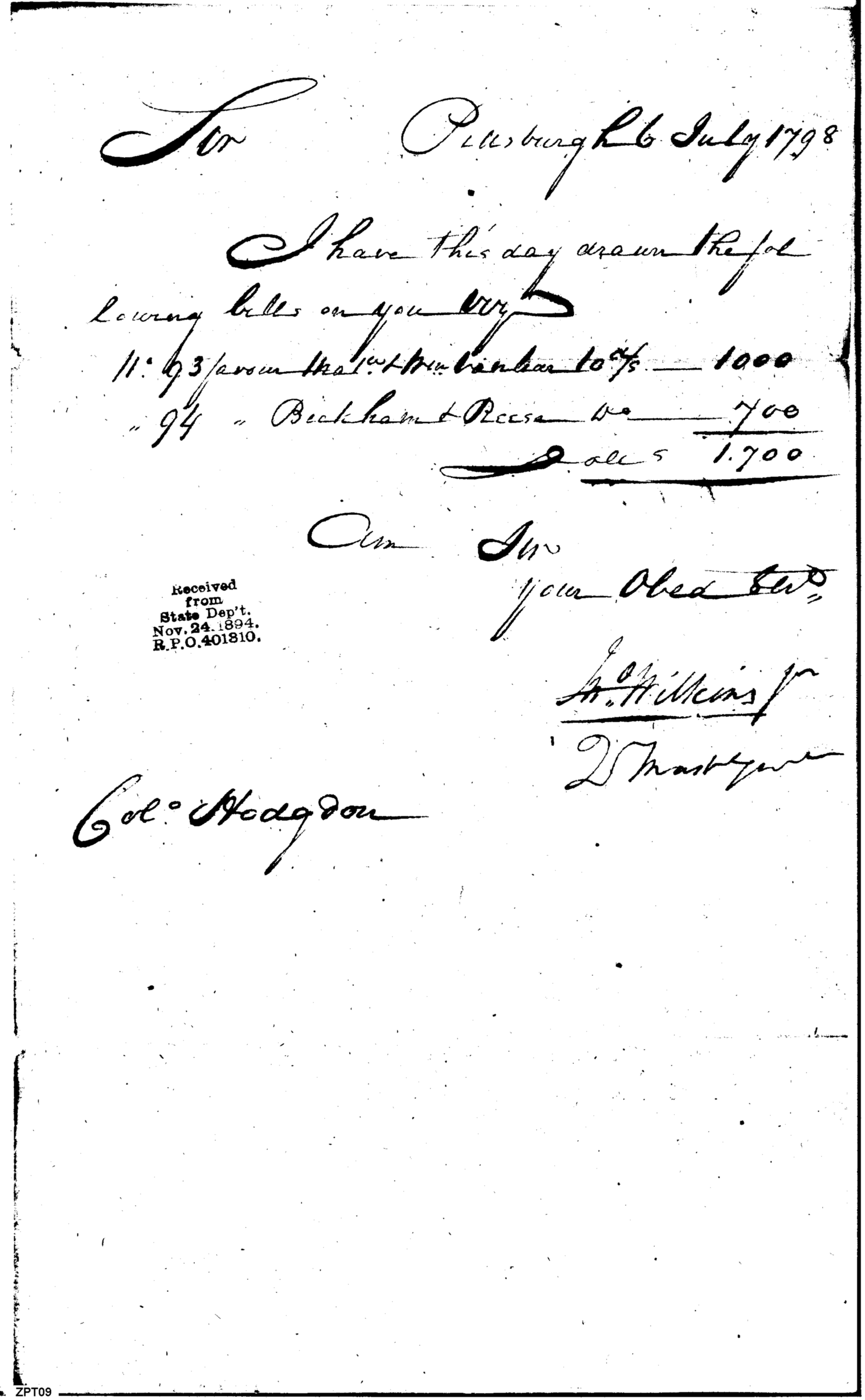 Two Bills Drawn on Hodgdon