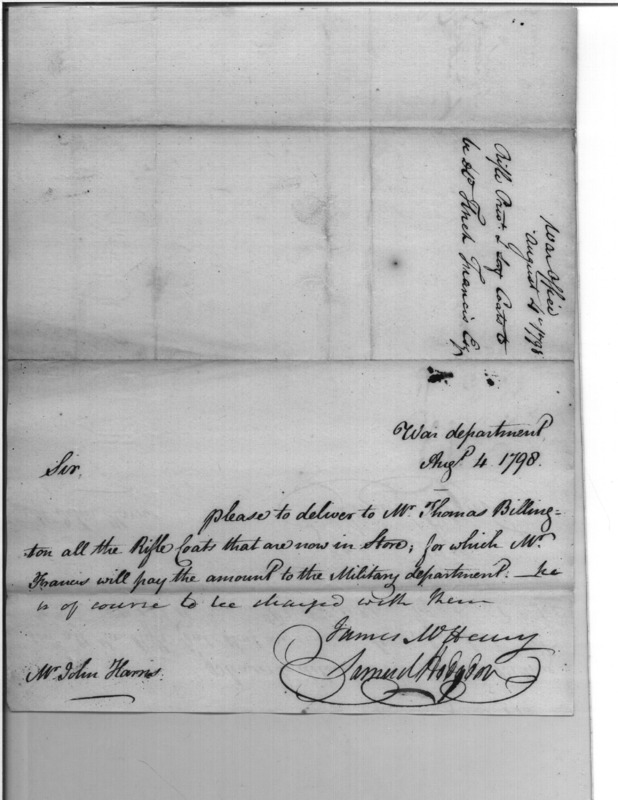 - In source: Collection: Correspondence, Reports, Returns, Bills, Accounts Current' Statements, Receipts, Vouchers and Contracts of Philadelphia Supply Agencies (Coxe and Irvine Papers), 1794-1842. (RG92)