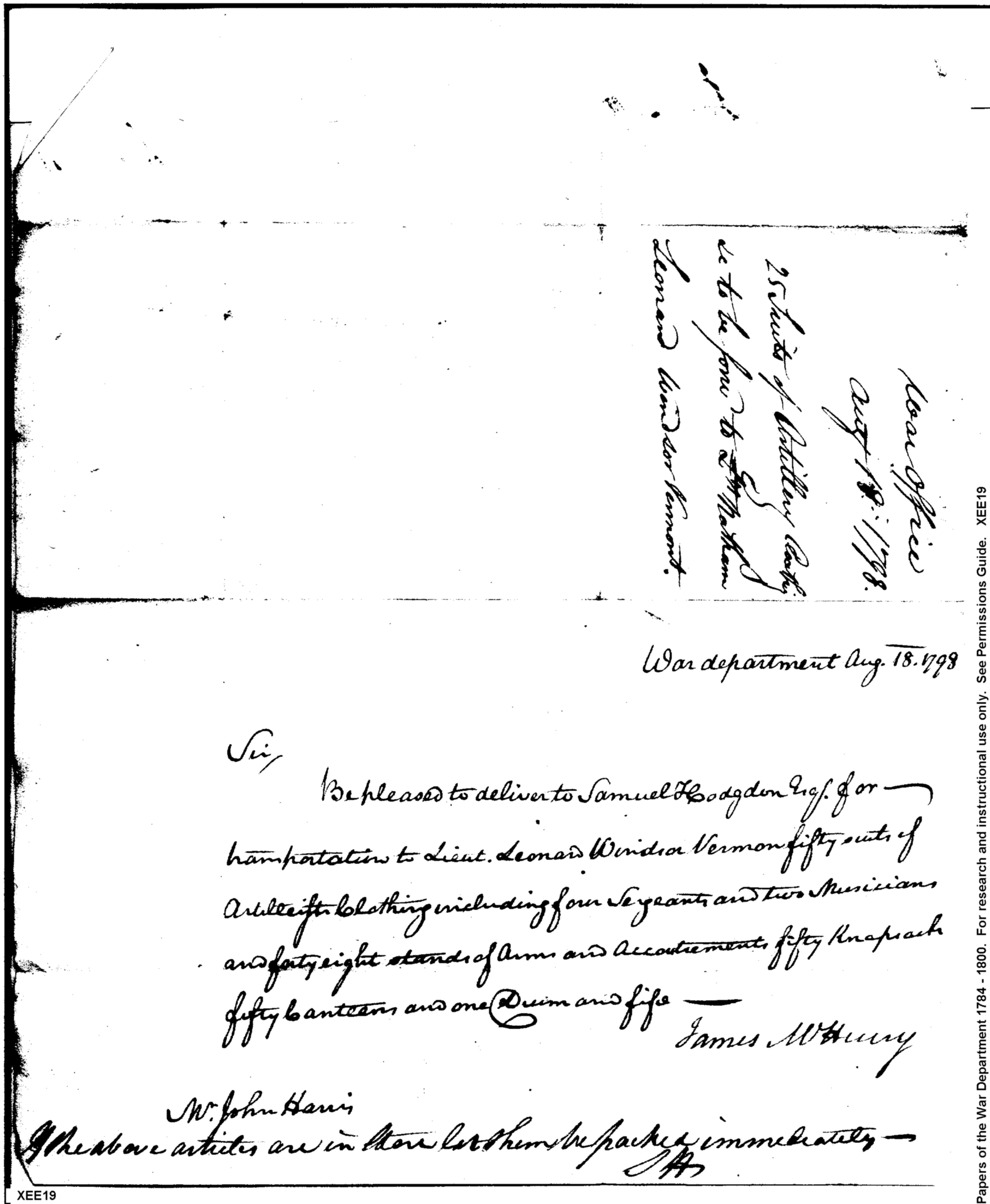 - In source: Collection: Correspondence, Reports, Returns, Bills, Accounts Current' Statements, Receipts, Vouchers and Contracts of Philadelphia Supply Agencies (Coxe and Irvine Papers), 1794-1842. (RG92)